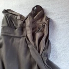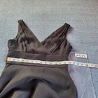 This is a stylish and elegant piece crafted from black silk tricotine fabric with a chiffon overlay. This sleeveless dress features a flattering V-neckline, strappy sleeves, and a fit & flare silhouette. The dress has a side zip closure, with a midi length. It is adorned with a zipper accent and tailored with slimming features like an empire waist to enhance the overall look. In very good condition, no rips or stains. Please see pictures for details and let me know if you have any questions I ship the next business day
