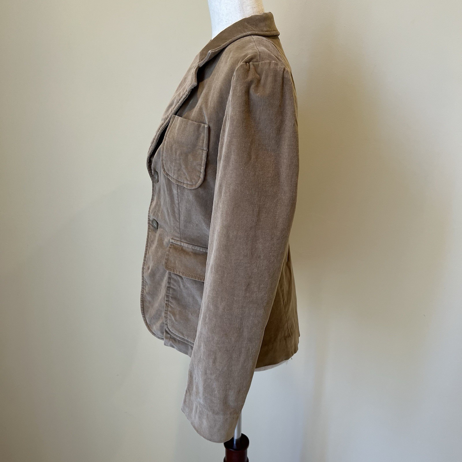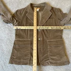 See pictures for measurements. The J Crew Women's Corduroy Blazer Jacket in size M is a classic and preppy piece perfect for academia or a stylish casual look. Made from cotton corduroy with a solid tan color, this short jacket features long sleeves and a button closure. It is versatile for various occasions such as parties, casual outings, or business events. The blazer also includes accents like buttons and a classic fit, making it a timeless addition to any wardrobe. Ideal for those who appreciate a retro or university-inspired style, this blazer jacket is both practical and fashionable.