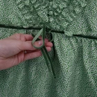 This blouse is your new wardrobe MVP: a silky smooth green wonder with ruffles that scream "I woke up stylish." Plus, it has a tie waist for added snatch-ness. • Ruffled V-neck adds elegance • Short sleeves for comfort • Tie waist for adjustable fit • Lightweight and breathable silk • Green & white pattern is versatile