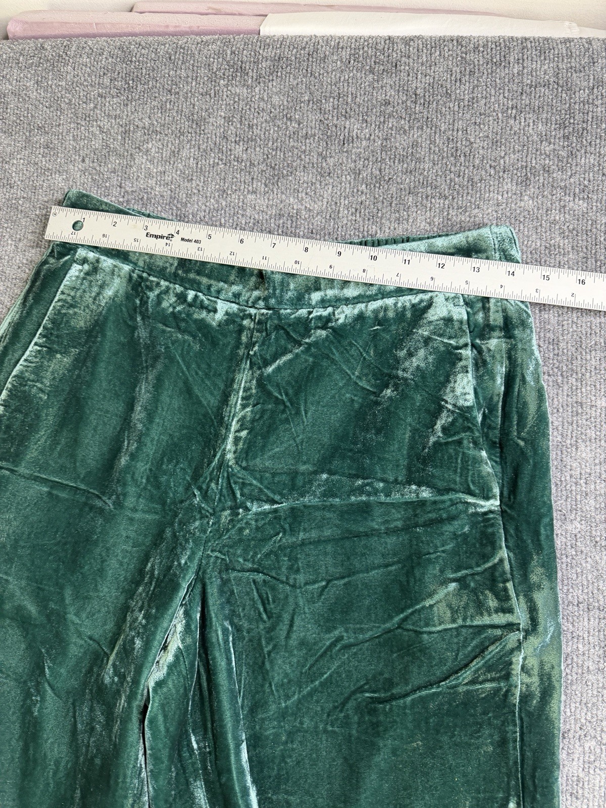 J Crew Women's High Waisted Green Suede Wide Leg Pants 6T. Condition is Pre-owned - Good. Shipped with USPS Ground Advantage.