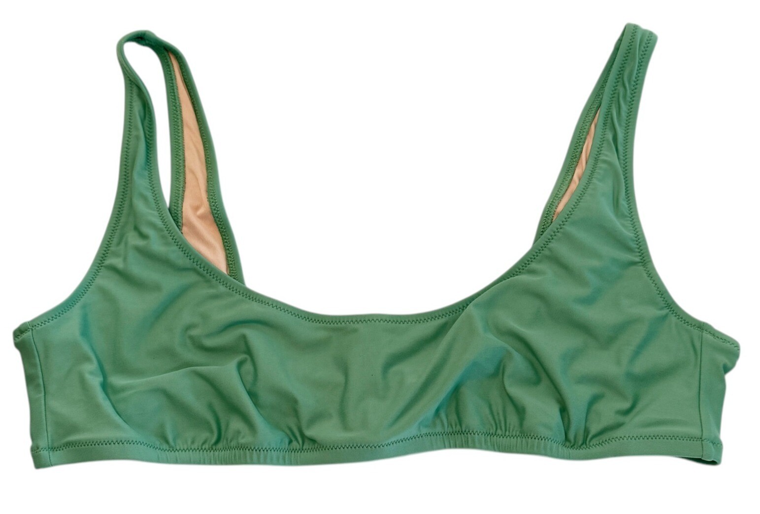 This J. Crew bikini top features a scoop neck design in a vibrant green hue. Perfect for beach days or poolside lounging, it provides a comfortable fit for XL sizes. New with tags, this piece combines style and quality. • Unpadded • Lined • Hook Back Closure - Size - 34C - Color - Green - New with tags. No flaws - Material and Care Tag in Photos. 92% Polyamide 18% Elastan - Smoke and pet free home * I accept reasonable offers. * Same or next day shipping. * New items posted daily. * All used items are cleaned, washed, and/or thoroughly steamed before listing. * Bundle discounts in closet Size: Womens 34C Condition: New With Tags