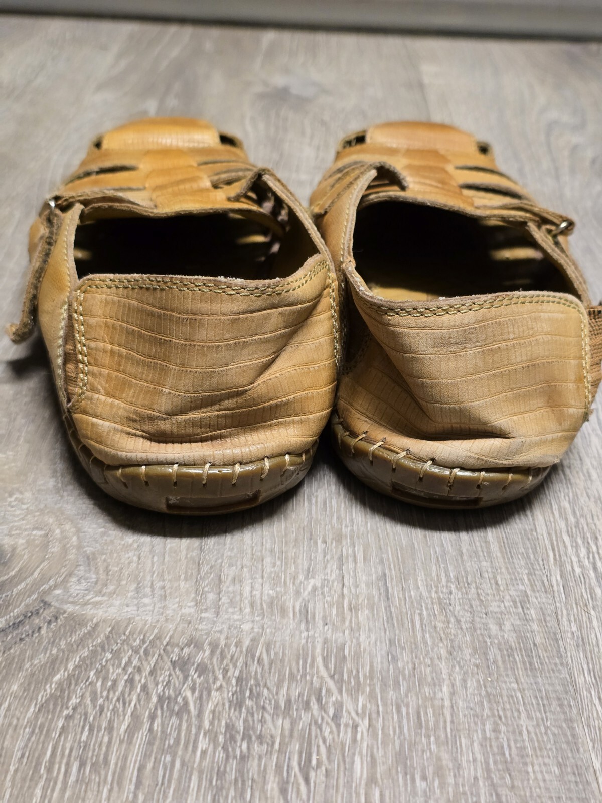 Elevate your style with these J. Fontini Men's Handmade Brown Leather Fisherman Closed Toe Sandals. Crafted with solid pattern and made of high-quality leather, these sandals are perfect for any occasion. The closed-toe design ensures durability and comfort, while the handmade touch adds a unique touch to your outfit. These sandals come in size 9.5 for US shoe size and 43 for EU shoe size. The brown color complements any outfit and the fisherman style adds a touch of sophistication. Perfect for men who want to add a touch of elegance to their wardrobe.