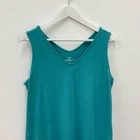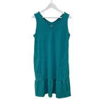 J. Jill Aqua Blue Flounced Hem Double V-Neck Sleeveless Tank Cotton Knit Spring Summer Dress Double v-neck Sleeveless Side seam pockets Pleated hem Cotton-modal blend Size medium *Approximate measurements: Pit to Pit- 19.5” Waist- 20.5” across Length- 37” *Excellent preowned condition