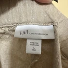 J. Jill Beige Linen Blend Straight Leg Pull On Stretch Pants Women’s Large Tall Good pre-owned condition, no flaws. Approximate flat lay measurements: Length-37” Waist-19” Inseam-27” Rise-10” These J. Jill pants are designed for women in size Large Tall with a waist size of 38 inches. They feature a beige color and are made of a blend of spandex, viscose, and linen, offering a comfortable stretch. The pants have a straight leg style with a 27-inch inseam and a pull-on closure for ease of wear. Suitable for various occasions like travel, casual outings, or workwear, these ankle-length pants with a solid pattern and logo accents exude a beachy and bohemian theme.