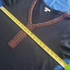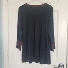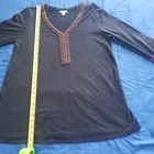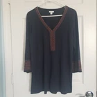 J Jill Boho Tunic Top Size Medium. Solid Navy Blue in a heathered shade - photos against door are most representative of color. Embroidery is orange and black and very detailed. 60% Cotton 40% Tencel Modal is lightweight and very soft fabric. Oversized fit. Made in India. Excellent condition. NOTE: Label was attached upside down at time of manufacture (top was probably sold at an outlet store due to flaw). Lagenlook Boho Cottagecore Hippie Peasant Returns accepted - buyer pays return shipping.