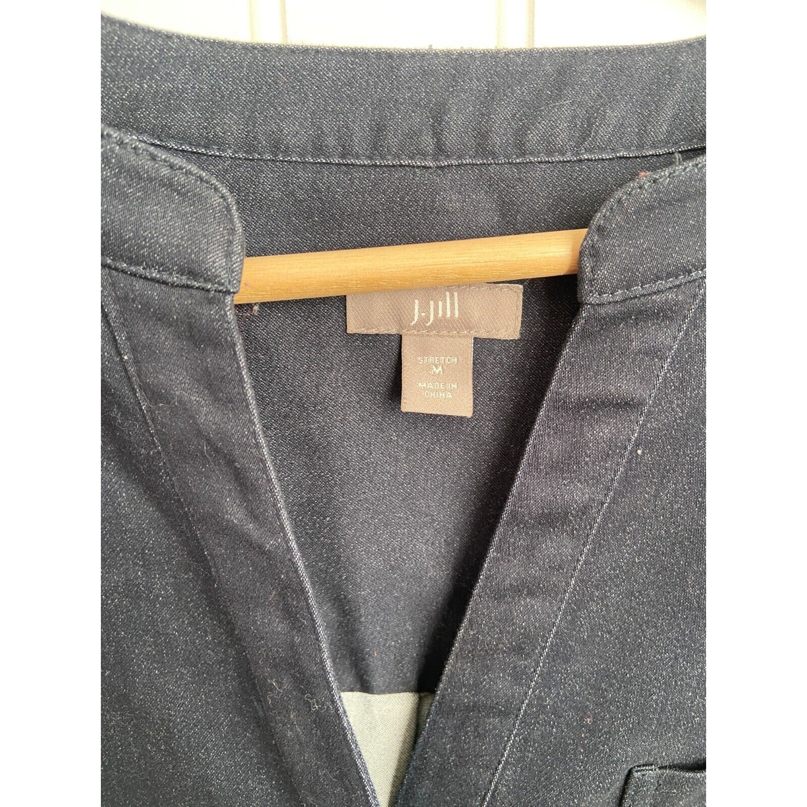This J. Jill dress is a versatile and stylish piece for women in size medium. The dark blue color and long sleeves make it perfect for casual or workwear occasions, while the V-neck and button closure add a touch of sophistication. The dress also features pockets and a comfortable stretch material of polyester, spandex, and cotton. Machine washable and suitable for all seasons, this classic western-inspired shirt dress is a wardrobe staple for any fashion-forward woman. Length: 36", Pit to pit 20"