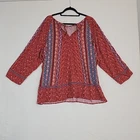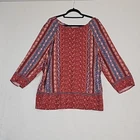 Fabulous top by J. Jill! Floral and Paisley pattern Rust orange and blue in color 3/4 sleeves Key hole tie back closure Flowy 100% rayon Size 2X APPROXIMATE MEASUREMENTS Length: 29" Sleeves: 20" PTP: 27" Size 2X Excellent condition! No tears or stains. Pet-free and smoke-free environment Bundle with other items from my closet for the best deal! Tags: Floral, Paisley, fall, summer, spring, fall, cottagecore, grannycore, peasant, boho, plus, fluid, flowy