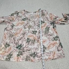 J. Jill Love Linen Palm Leaf Bouse Size Large 3/4 Sleeve V-neck Loose Fit Lightweight Off White/Pink/Green Good Pre-owned Condition