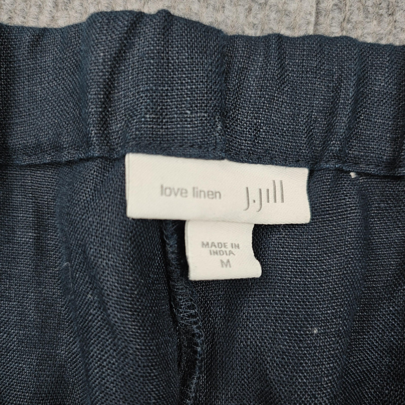 Brand: J.Jill Line: love linen Item: Womens linen pants Tag size: Medium (M) Color: Navy Blue Material: Linen fabric Made in India (per tag) Features: Pull-on elastic waistband for comfort Features: Relaxed, straight-leg silhouette Features: Side pockets Unlined, breathable fabric ideal for warm weather Notes: Refer to photos for close-ups of fabric and details; color may vary by screen.