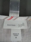 J. Jill Love Linen Tunic Top Size medium (measurements below) Striped~white, beige, red, pink, yellow V-neck Button front 3/4 tab sleeves have split seam cuffs 100% linen Hand wash Approximate measurements laid flat: Underarm to underarm: 22" Sleeve length unrolled (neckline to end): 22" Length (front shoulder to bottom): 31"