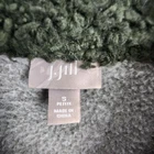 - Pre-owned; mild wear; DAMAGE: 1 area of staining noted at back of left shoulder (see photos) and one small hole noted along inner pocket (see photos) - J. Jill brand - Measurements: Size: Small Bust / Chest (pit to pit): 20 inches Length: 26.5 inches Sleeve Length: 23 inches - Description: Deep green snap button closure sweater jacket with faux shearling lining and faux fur collar; inner and outer pockets - Material: Body: 54% cotton and 46% polyester; faux fur: 61% modacrylic, 22% polyester and 17% acrylic OFFERS WELCOME! NOTE: Item has been thrifted for re-selling purposes. Most items have been washed via at-home machine or dry-cleaned, though not in every case. Reach out for more questions regarding this specific item if you wish! Some items in my inventory may require the buyer to invest in the cleaning of the item. Item is listed on other platforms, get it while you can! - classic, basic, everyday, warm clothing, cold weather, neutral, outdoor, outdoors, hiking, camping