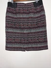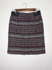 J. Jill Chic Textured Mini Pencil Skirt. Black, Red, Gray Boho Aztec Tribal Pattern. Black Elastic on Waist Sides. Small Black Zipper on Back. Size XS. Waist Lying Flat 14" Length 19" Shell: 74% Cotton 26% Polyester Lining: 100% Polyester. Minor Signs of Wear on Fabric. Overall Good Condition. Gently Used. Inventory: L/10