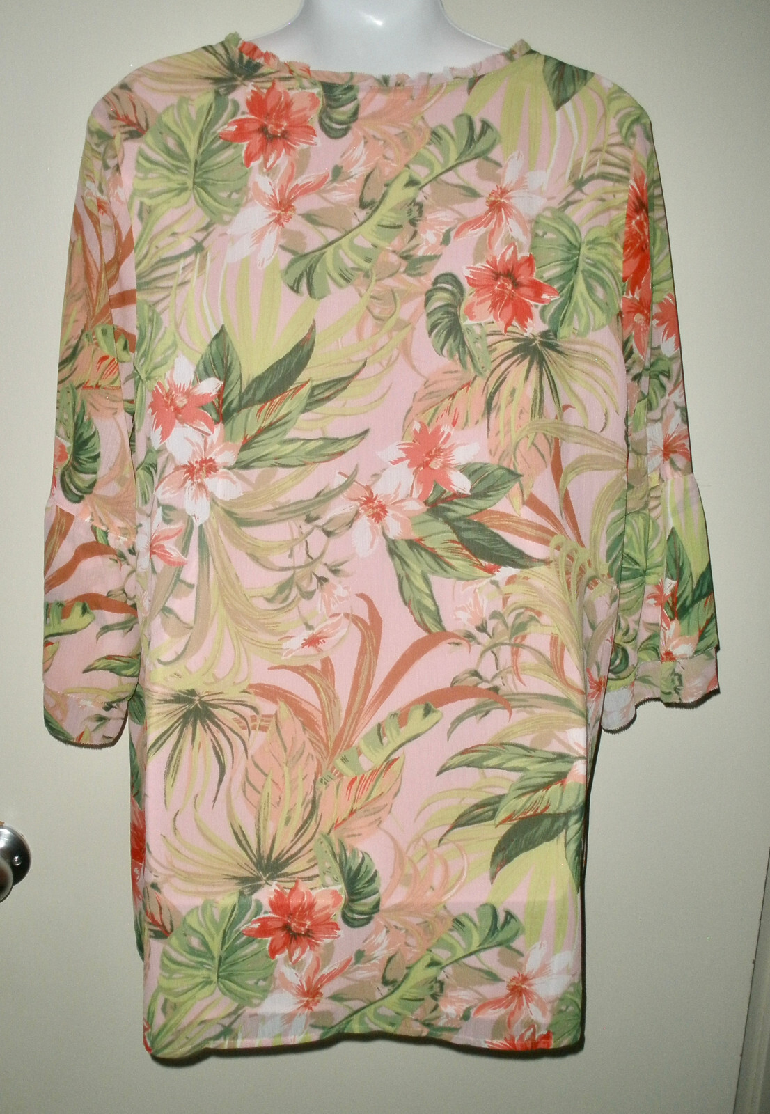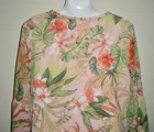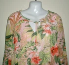 This is for J Jill Top It is preowned, It has no rips, tears or stains. It is made of polyester The shirt is pink with a green, orange and more. It an all over pattern. IT has tie at the neckline. It is lined in pink. It has slits on the hips. It has a ruffle accent around the neckline. It has 3/4 sleeves. It measures armpit to armpit laying flat is 20". It measures down the back 28". It is a size Medium If you have any questions or problems - before or after. Please message me.