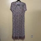 J. Jill Women’s Size Small Desert Floral Button Front Maxi Dress Pink White Very good pre-owned condition, no flaws. Approximate flat lay measurements: Length-49” Bust-35” Hip-41” Sleeve-8” This J. Jill women's maxi dress in size small features a desert floral pattern in pink and white, perfect for a bohemian or hippie-inspired look. The dress has a V-neckline, short cap sleeves, and a button front closure. Made of comfortable rayon fabric, this long dress is suitable for various occasions such as travel, weddings, parties, and casual wear during the summer, fall, and spring seasons. The vibrant floral design adds a touch of femininity and charm to the overall style of the dress.