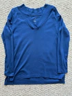 J. Jill Women Top Small Blue Shirt 100% Perfect Pima Cotton V Neck Long Sleeve