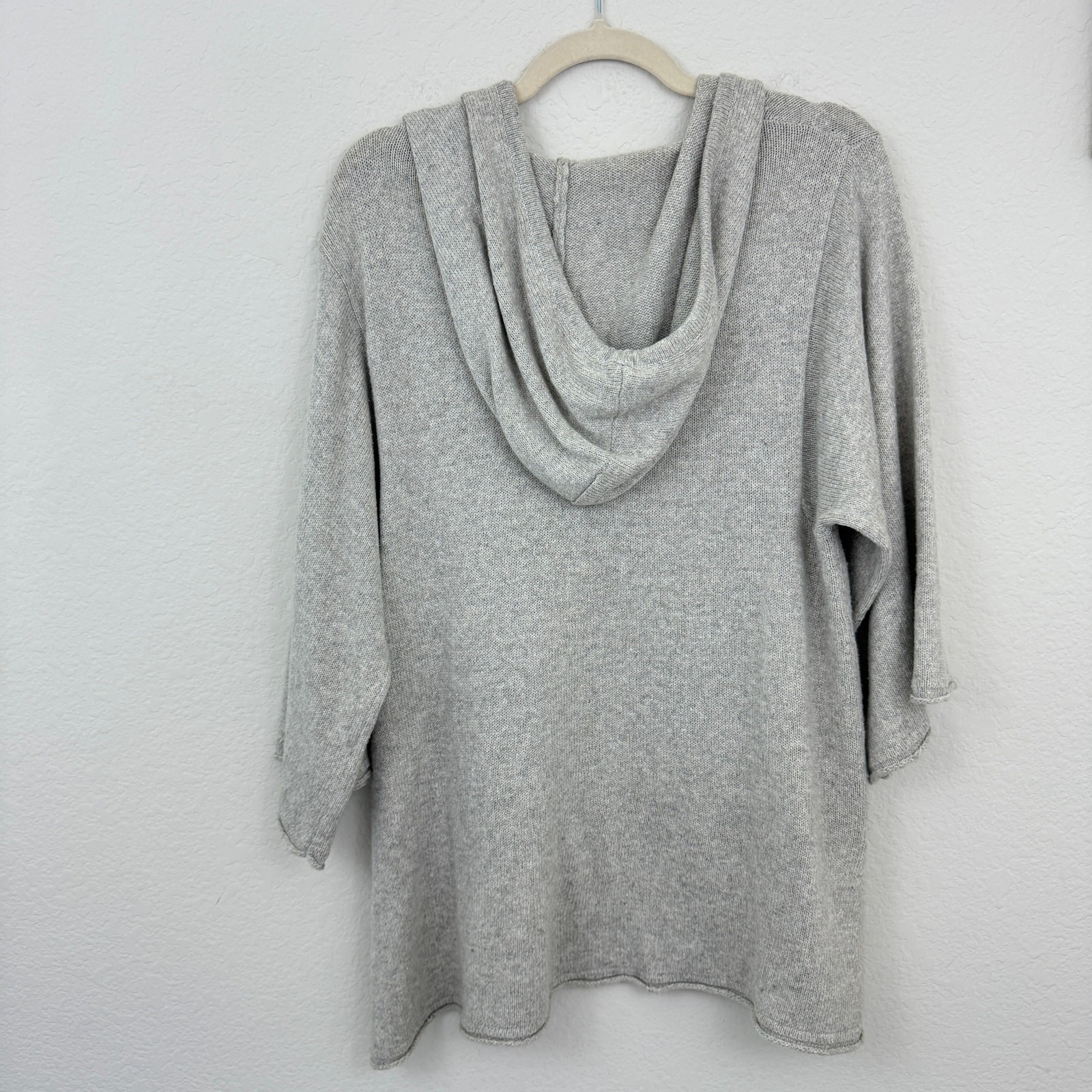 Brand: J. Jill Size: Small Measurements: Please see photos for approximate measurements. Condition: In excellent pre-loved condition. Color: Pale gray Material: cotton, acrylic, poly, yak hair, wool Features: Hooded with neck ties Short wide sleeves with rolled cuff Longer length Soft, cozy knit fabric Tags: Minimal, minimalist, neutral, modern, simple, contemporary, capsule wardrobe, timeless, classy, chic, everyday, easy, wool, fall, winter, spring Pre-owned clothing items are properly cleaned, washed, and/or steamed at high heat before listing.