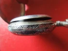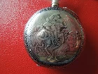 ANTIQUE ENIGMA LONDON PATENT WOLF TEETH SWISS 800 SILVER NIELLO LION HUNTING SCENE .No 12387 RUNS WELL GOOD PORCELAIN DIAL TOTAL WEIGHT 92,2 GR 48 MM SCARCE