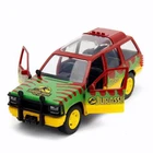 Jada Hollywood Rides: Jurassic Park 30th Anniversary Ford Explorer 1/32 Scale Brand new 1/32 scale diecast car model of Ford Explorer Red and Yellow with Green Graphics "Jurassic Park" (1993) Movie 30th Anniversary "Hollywood Rides" Series die cast car model by Jada. Brand new box. Real rubber tires. True-to-scale detail. Has opening front doors. Detailed interior, exterior. Officially licensed product. Manufacturer's original unopened packaging. Made of diecast metal with some plastic parts. Dimensions approximately L-5, W-2, H-2.1 inches. Please note that manufacturer may change packing box at any time. Product will stay exactly the same.