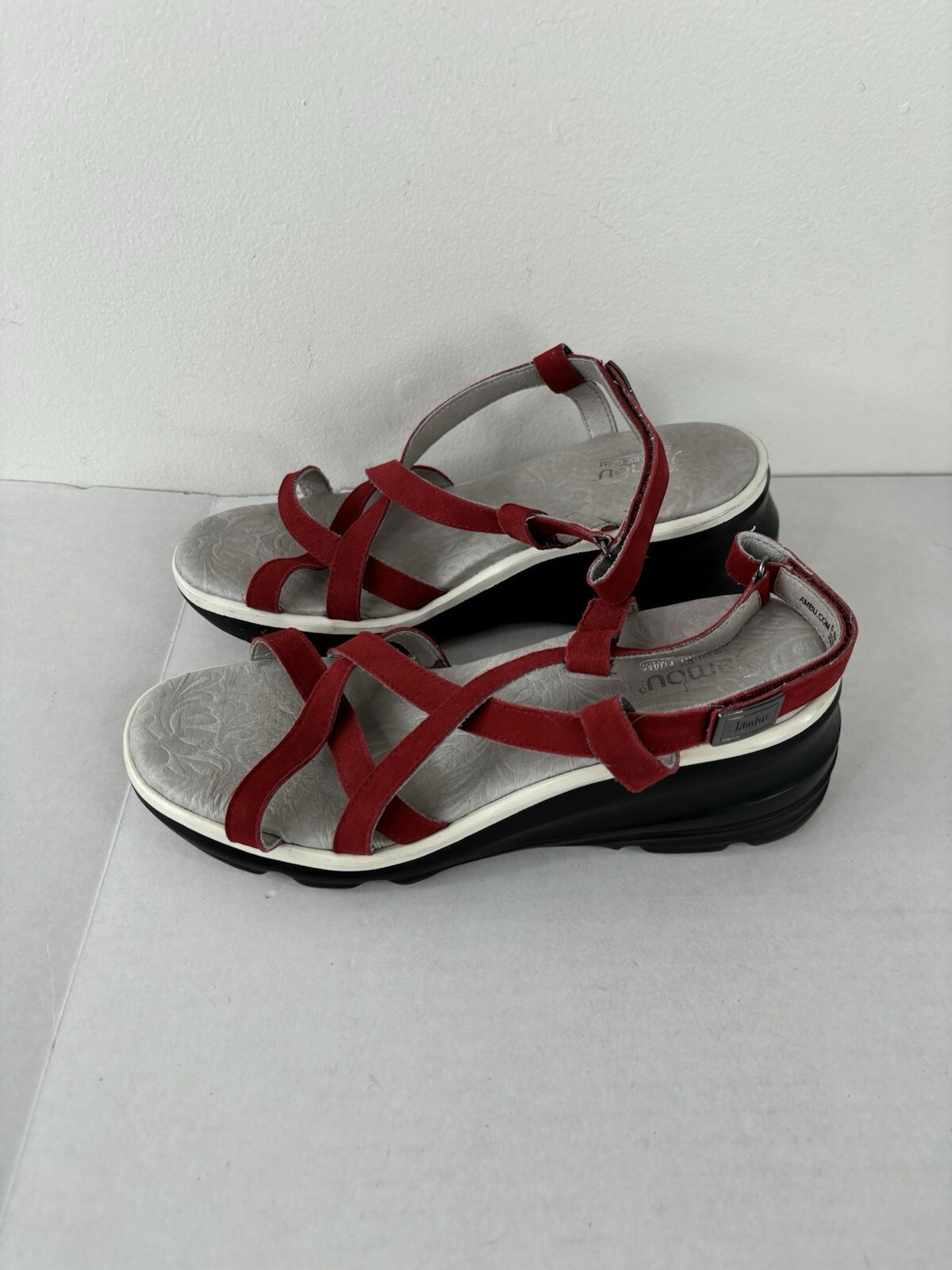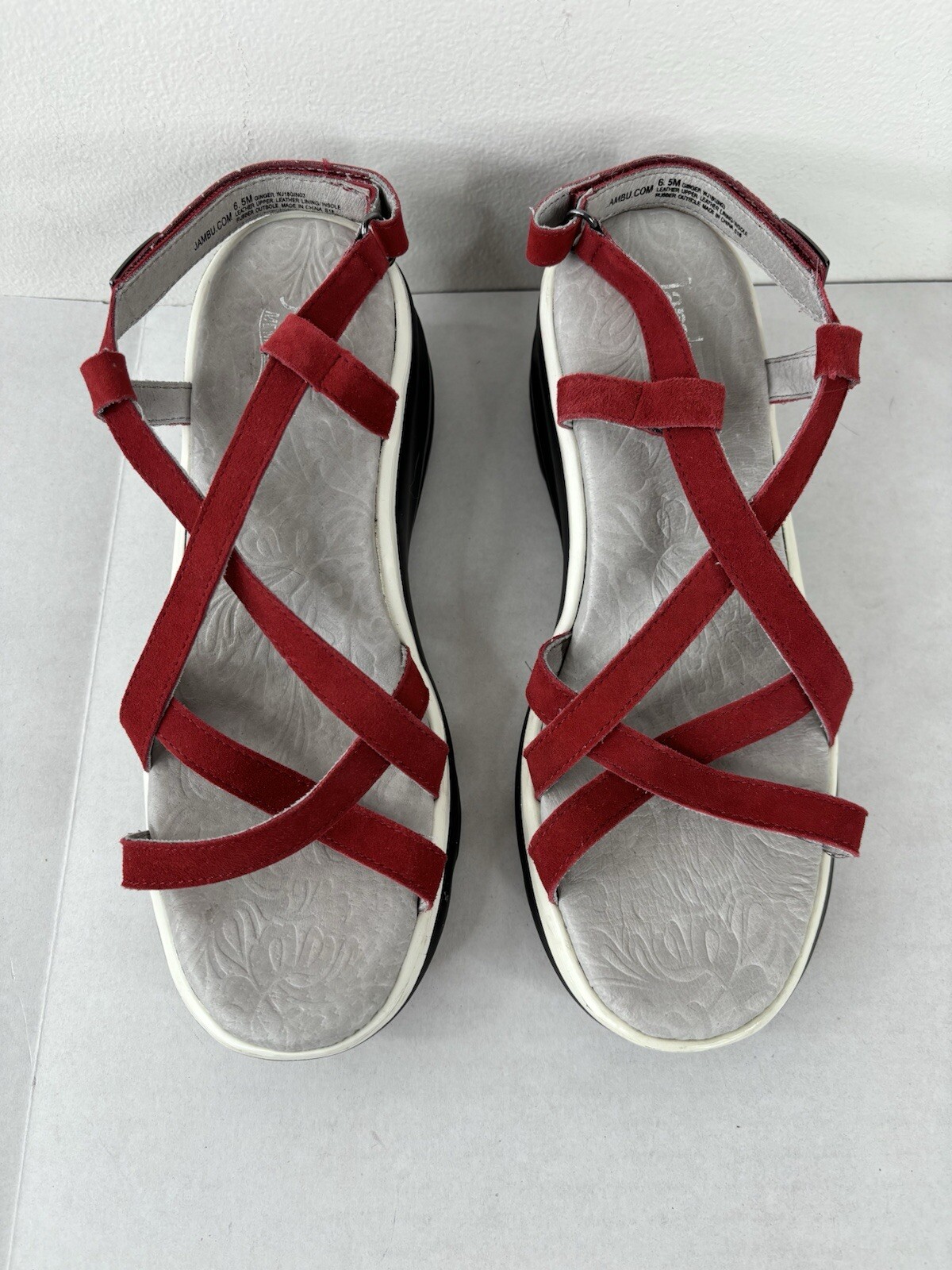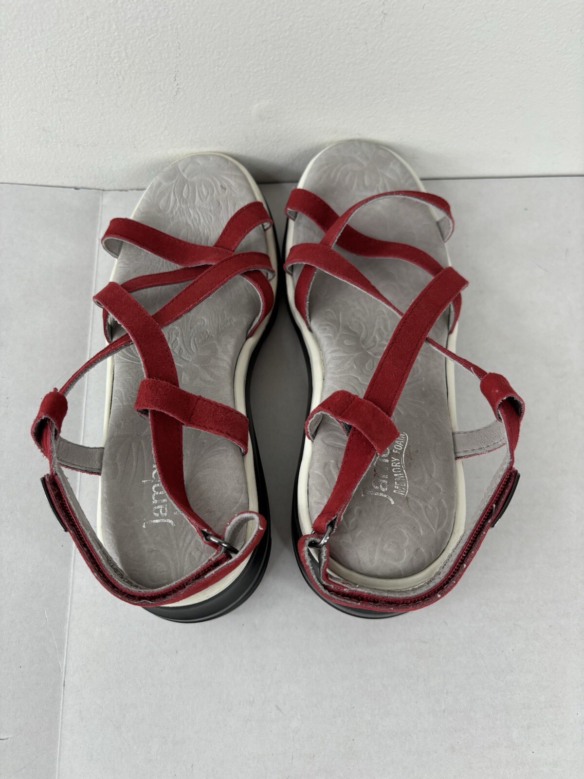 Jambu memory foam sandals 6.5 M red Strappy wedge hook & loop good condition