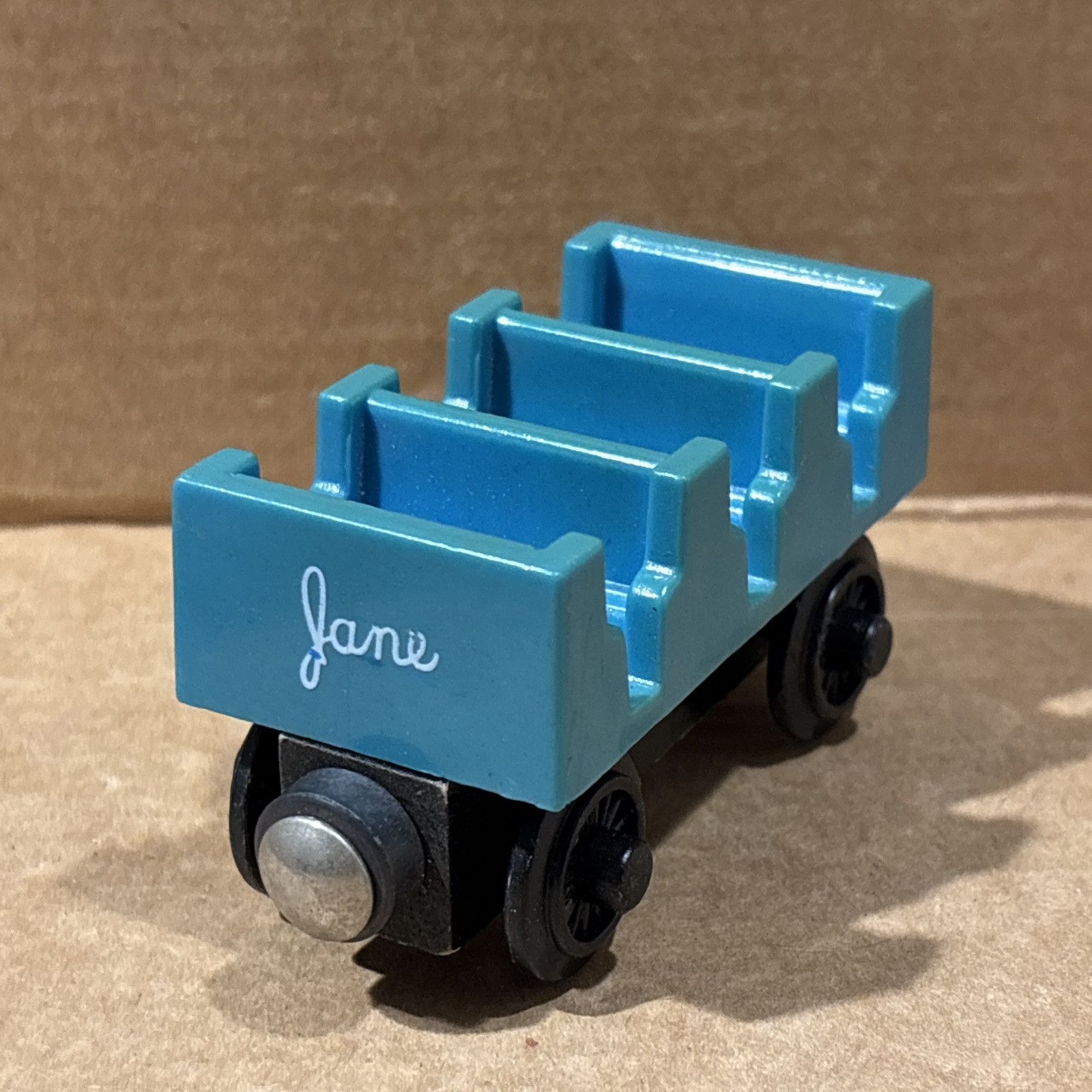 JANE - Open Air Coach Car- Thomas & Friends Wooden Railway Train Tank Engine Used - Jane is a little Discolored. Sun made it greenish, maybe. Ships usps ground advantage.