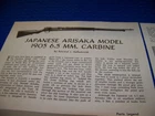 THESE ARE EXTEMELY RARE PROFILES OF ALL TYPES OF GUNS SUCH AS LISTED BELOW!.........DONT MISS YOU CHANCE TO AD THIS TO YOUR COLLECTION! THESE ORIGINAL PERIOD (1960'S/70'S ) PAPER ARTICLES WERE BOUGHT FROM A GUN COLLECTOR ESTATE SALE AND ARE SLEDOM SEEN!.......ALL IN AWESOME CONDITION FO THEIR AGE! UP FOR SALE IS AN ORIGINAL PRINT 2-PAGE ARTICLE ON:. JAP. ARISAKA 1905 (6.5MM) CARBINE Page/s size: APROX: 8 1/2 " X 11" AUTHOR/ARTIST: PENCE YEAR: 1988 ORIGINAL PRINT SCALE: N/A ARTICLE FEATURES: HISTORY/DETAILS/PHOTO/DISASSEMBLY DETAILS WITH PROFILES..EXPLODED VIEW WITH PARTS LEGEND/DETAILS CONDITION: GREAT-LIGHT COLORING(NORMAL).. ** SOLD FOR 2-PAGES DRAWINGS/PROFILES ...ANY OTHER ARTICLE ON BACK OF DRAWINGS/ARTICLE ARE NOT REPRESENTED IN THIS AUCTION!*** (REMEMEBER THESE ARTICLES ARE EXTREMELY OLD AND RARE...SOME MAY HAVE SOME BORDER DISCOLORATION/SMALL EDGE CHIPS/PAGE DISCOLORATION)/BINDING CUTOUTS.....SEE CONDITION AND NOTES LISTED ABOVE AS TO EACH ARTICLE! **THESE ARE AIRCRAFT ARTICLES THAT HAVE BEEN EXTRACTED FROM VINTAGE MAGAZINES/ECT,.. AND ARE INDIVIDUAL PAGES OF EACH SUBJECT AND SOLD AS COMPLETE ARTICLES ON EACH SAID AIRCRAFT AS LISTED ABOVE!.. NOT SOLD AS A COMPLETE MAGAZINE or BOOKLET!!! **all articles are shipped flat on cardboard flat and mail flat in manila envelope to INSURE condition! ** I DO OFFER COMBINED SHIPPING ON MULTIPLE ITEMS PURCHASED