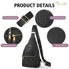 JASGOOD Sling Bag for Women Crossbody Leather Fanny Packs Chest Bag Sling Backpack for Fashion Travel Quality Material: Faux leather+Thick Gold Zip hardware. Smooth and comfortable to wear. Versatile Design Bag: crossbody bag is 13.7”*7.3”*3.9”, bag strap adjust range is from 21.6”-42.1”. You can use the bag as a chest bag,shoulder bag, cross body bag, sling bag by adjust the length perfect for you body. Multiple Compartment Pack: one main compartment, one middle zip pocket, a front insert pocket, a front zip pocket. Accommodates your essentials for the day out. Fashion Look: The classic geometric pattern is specially designed for women to show their elegant. Many Occasion:Suit for traveling, shopping,vacation, commuting, dancing at a music festival and any other outdoor activities. Hand free convenience. Fashionable Sling Bag: this daypack is made of odorless high quality faux leather with soft texture which is both functional and stylish when use. Breathable nylon shoulder straps keep comfortable and soft. Gold zipper provide smooth use and retro style. The classic geometric pattern is specially designed for women to show their elegant. Versatile Design Bag: the size of our crossbody bag is 13.7”*7.3”*3.9”, and the lightweight is only 0.66 lbs. The bag strap adjust range is from 21.6”-42.1”, allow adjust the length perfect for you body. The bonus D ring can switch the strap so you can wear it on the right or left. Multiple Compartment Pack: our trendy waist pack have 5 pocket, one main compartment, one middle zip pocket, a front insert pocket for quick access to put small things, a front zip pocket to put small valuables and a back zip pocket for anti theft. This leather sling bag will accommodates your essentials easily like phone, key, wallet, lipstick est for the day out. Hands-Free Convenience: this trendy chest bag for women is cute and comfortable to wear. Whether you're traveling, shopping,vacation, commuting, dancing at a music festival and any other outdoor activities. This sling bag keeps your hands free so you can enjoy more your fun. No need to carry traditional purse! Many Application: you can use the bag as a chest bag,shoulder bag, cross body bag, sling bag , making it versatile to meet the demands of your everyday occasion. Also a great gift choice for women in any festival like new year, Christmas, Thanks Giving Day,Valentine’s Day est.