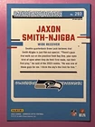 This is a 2023 Donruss Optic Green Hyper Prizm Rated Rookie #293 trading card featuring Jaxon Smith-Njigba of the Seattle Seahawks. The card is an original and comes with hologram, short print, parallel/variety, limited edition, exclusive, and rookie features. It is a standard size sports trading card manufactured by Donruss in the United States for the National Football League (NFL). The card is not autographed and is part of the 2023 season.