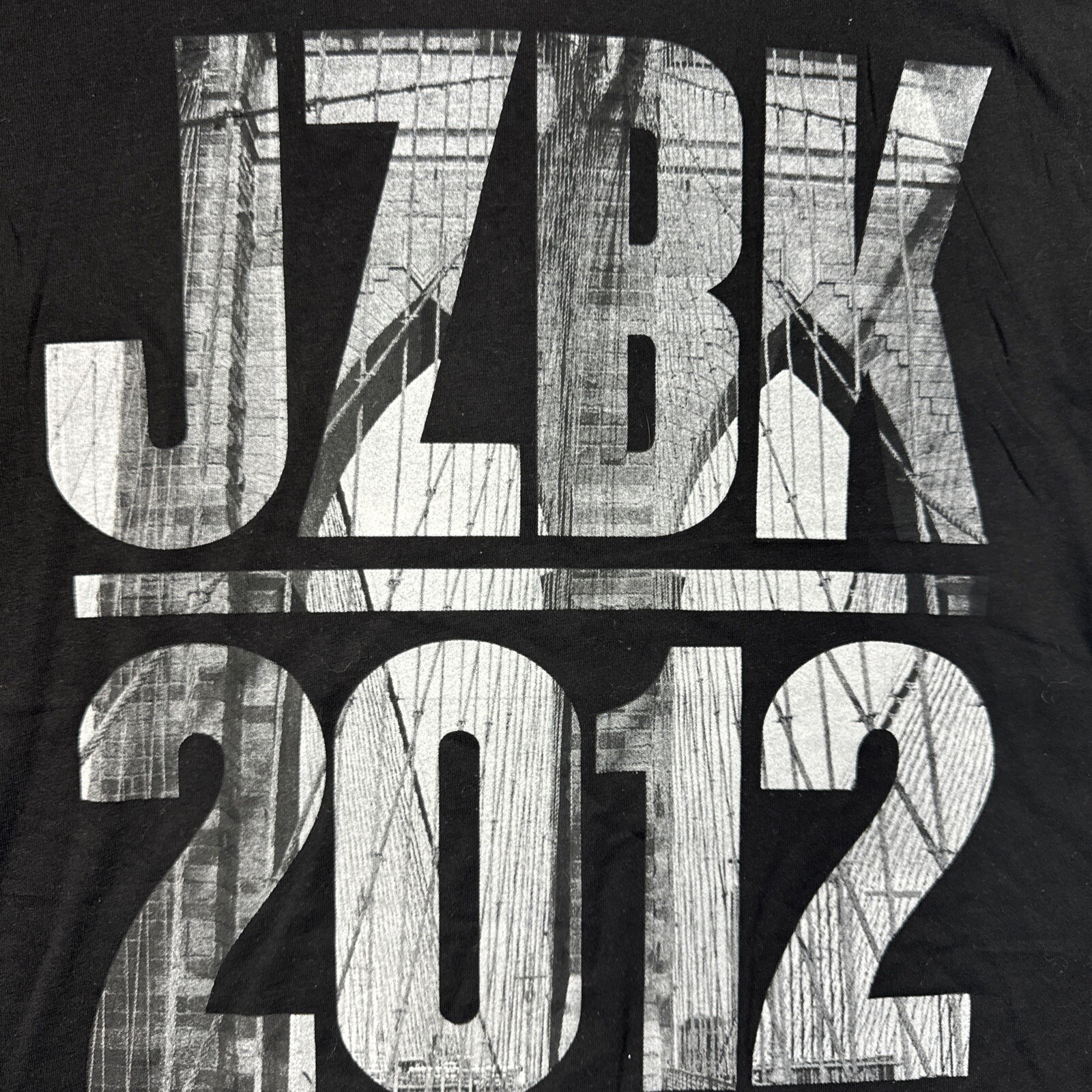 This Jay-Z concert t-shirt from his 2012 Live in Brooklyn tour is a must-have for any music fan. The solid black cotton t-shirt features a crew neckline and short sleeves, making it the perfect choice for a casual occasion. The shirt is machine washable for easy care, and the regular fit ensures comfort and style. The t-shirt is a women's size L and features the iconic JZBK tour logo on the front. The basic style and music theme make it a versatile addition to any wardrobe. Don't miss your chance to own a piece of music history with this Jay-Z concert t-shirt from Tultex.