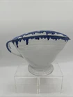 This beautiful vintage white pitcher with blue accents is a wonderful addition to any pottery collection. Crafted by Nell Cole Graves, this piece is signed and dated 1993. The intricate details and delicate design make this pitcher a true work of art. Perfect for serving drinks or displaying as a decorative piece, this pitcher is sure to impress. The pottery is made with high-quality materials and has been fired to perfection. Don't miss out on the opportunity to own this stunning JB Cole Pottery Seagrove piece. There are 2 small chips around rim. See photos for details