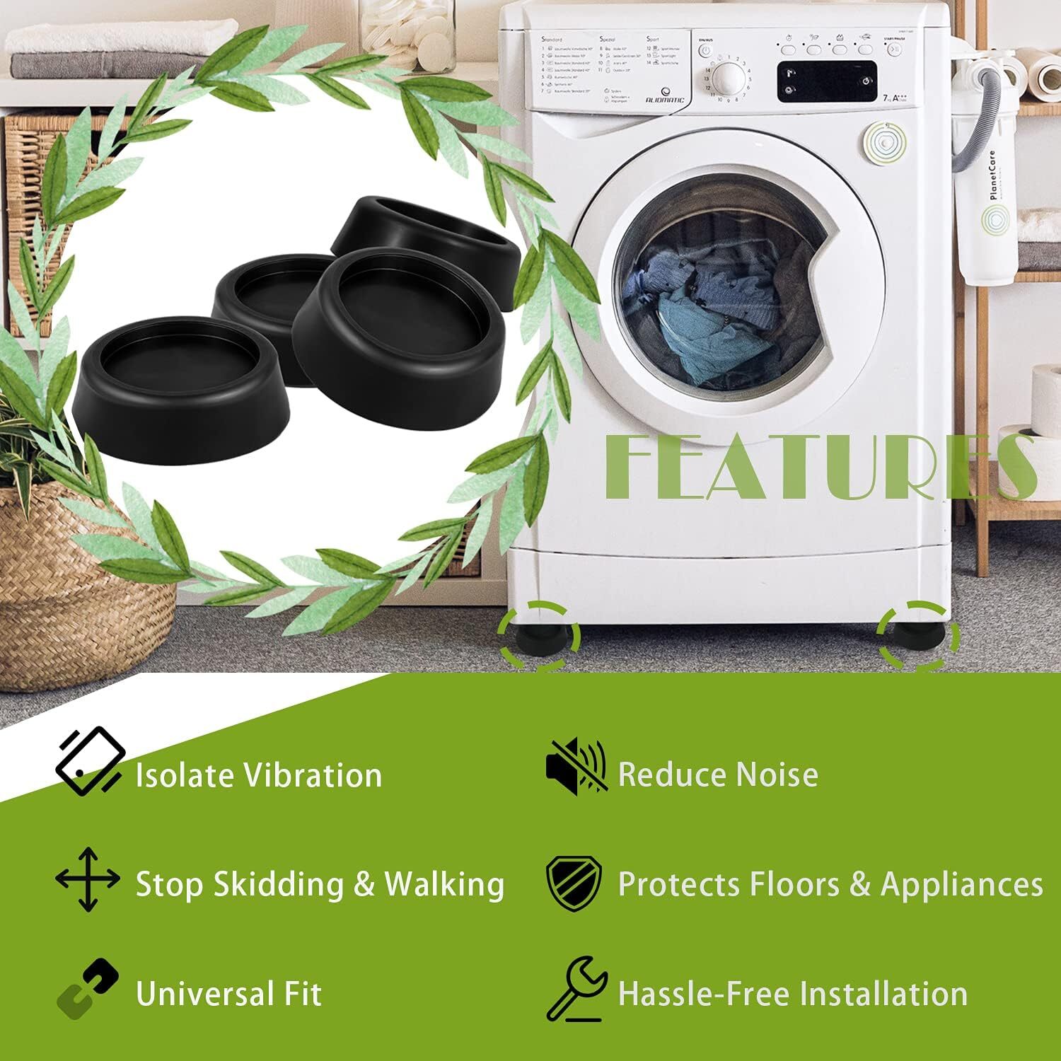 JB6368 Washing Machine Anti-Vibration Pads Kitchen Appliance Feet Rubber Protect Jb6368 Washing Machine Rubber Feet Pads, Anti-Vibration & Anti-Walk Rubber Dampers, Textured Grip Prevents Walking & Skidding, Best for Laundry Washer & Dryer Noise Reduction, 4 Count NOISE & MOVEMENT REDUCTION: Great gripping design that prevents washers & dryers from any type of vibration works on any type of flooring. This will prevent any "walking" or skidding of your machines. PREMIUM MATERIAL: This product is made of quality rubber that has very good vibration absorbing abilities. Our proprietary antivibration pad is oil and heat resistant. The heavy duty rubber compound is formulated to last forever. REASONABLE DESIGN: Our Uniquely sized washer pads have a universal indentation on top to fit any size washer/dryer. Easy to install on any type of work machine with feet. Great with compressors, tri-pods, couches, possibilities are endless. EASY INSTALLATION: Simply place them into place. PACKAGE INCLUDED: 4 Count Rubber Feet Pads Payment Delivery details Terms of sales Contact us Payment Orders will be ship out within 1-3 business days after payment has cleared. Delivery details Orders from Saturdays, Sundays or holidays will process on next business day and will be ship within 24 hours. Some shipments could take longer subject to your local customs authorities. We only ship to confirmed ebay addresses. Your ebay address MUST MATCH your Shipping address Terms of sales We accept 60 days return guarantee for all Items If you are unsatisfied with something you bought from us, you may send it back within 60 days of receipt, and we shall be happy to exchange or refund. Contact us If you have any question, please email contact me, we can solve all the problem. Brand Unbranded MPN JB6368 Type Washing Machine Anti-Vibration Pads Material Rubber Set Includes 4 Count Compatible Model JB6368 Color Black