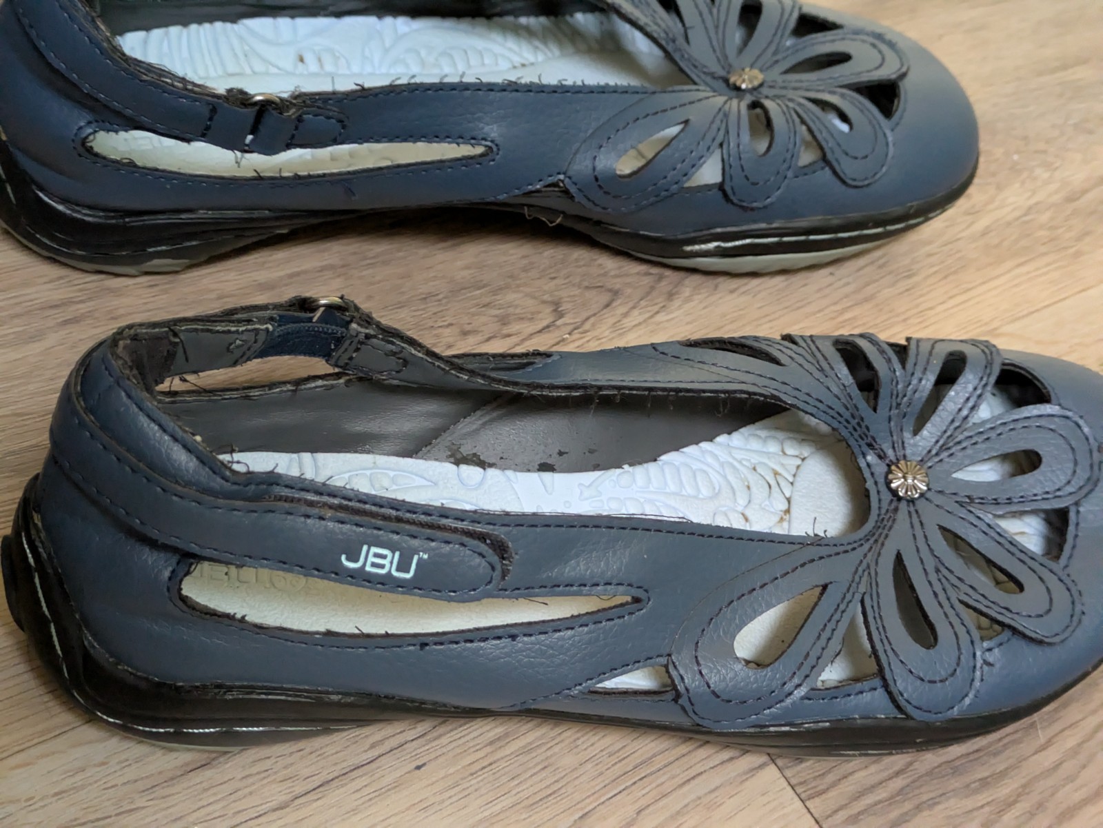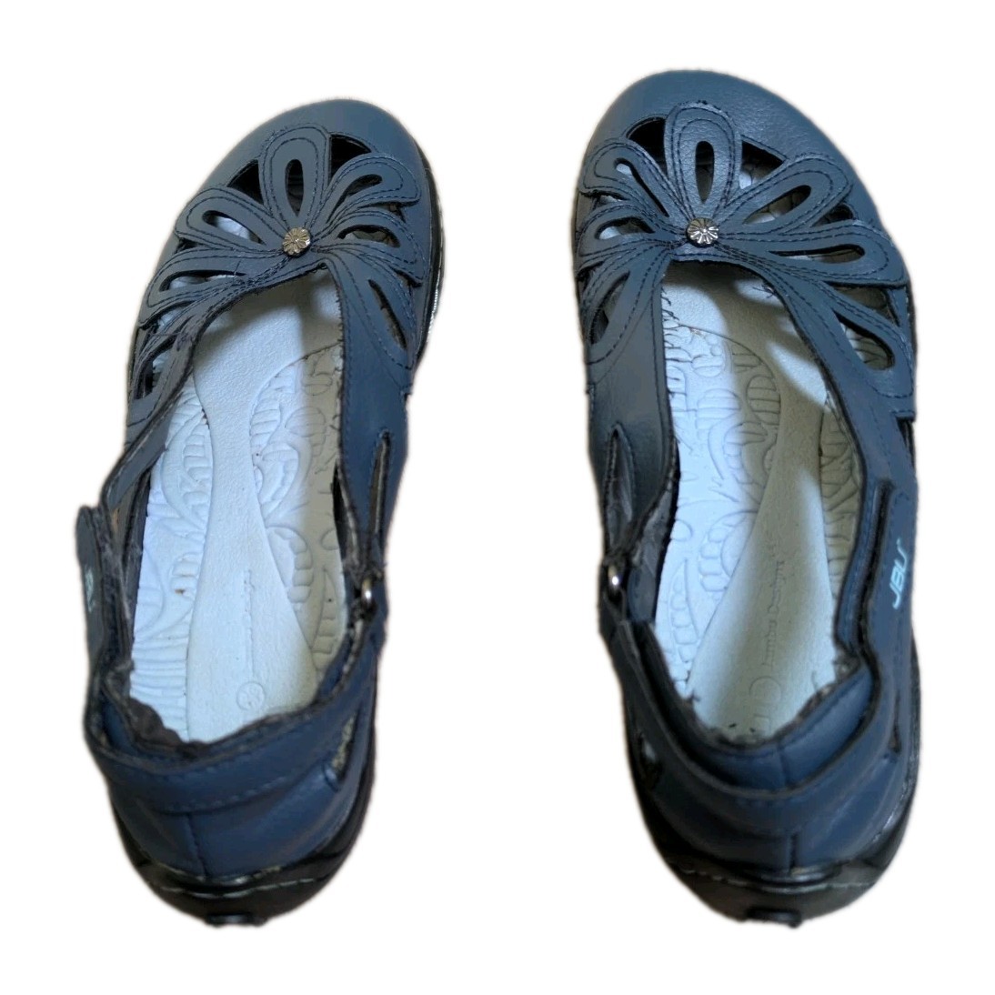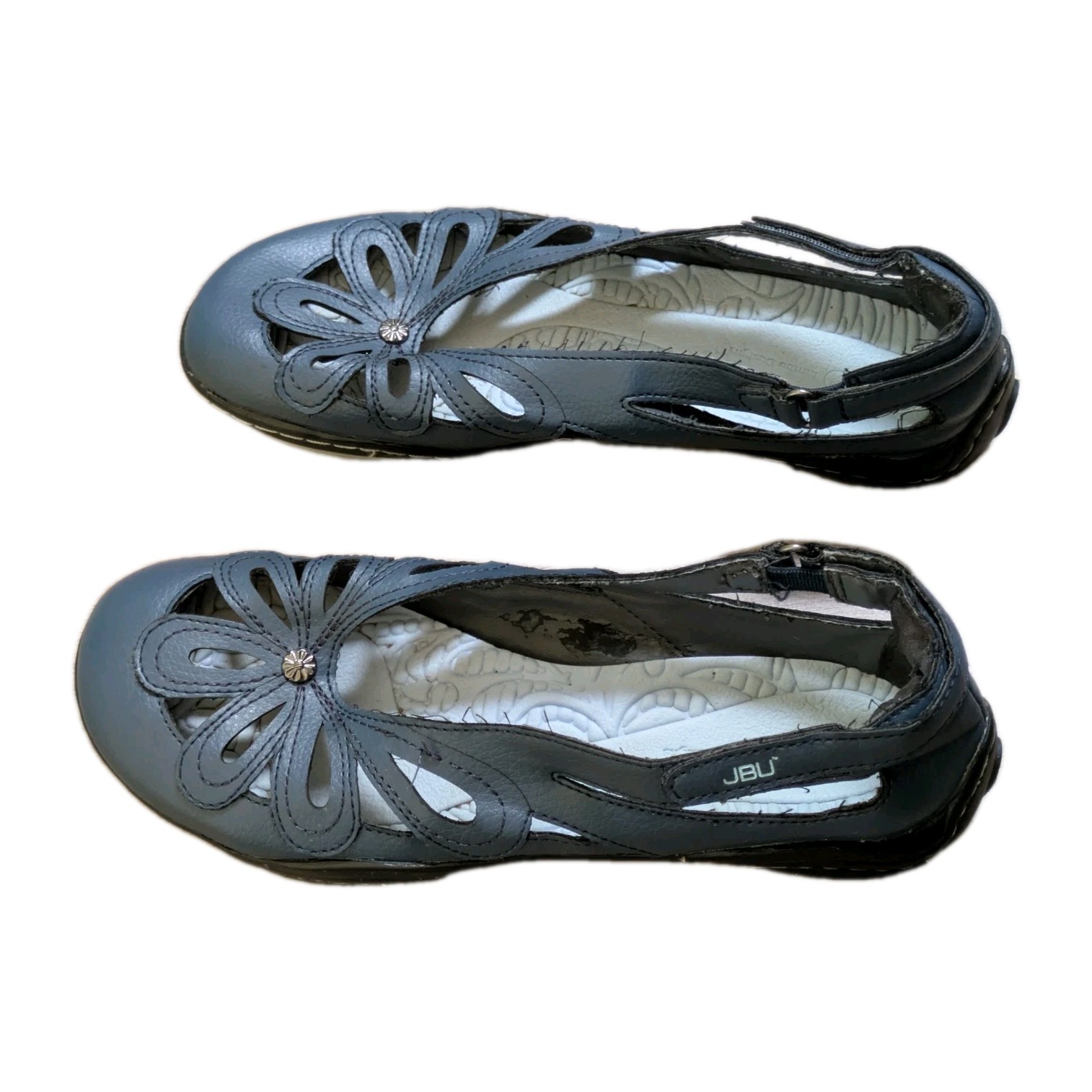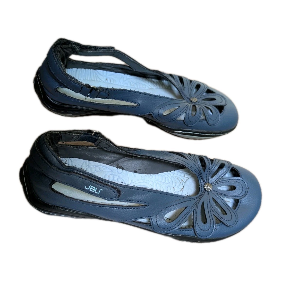 JBU Sandals Mary Jane Floral Vegan Ankle Straps Blue Shoes Women Size 7.5 M READ Cute JBU Mary Jane-style vegan sandals with a floral design and ankle straps. Labeled size 7.5M but fit much closer to a size 6. Shoes are well worn with notable signs of use, including loose threads and peeling on the interior. Priced accordingly. View photos for full details. Please view photos closely 📸 for the best assessment of the item’s condition. Feel free to ask any questions! 💬 Shipping & Packaging: Eco-friendly: Items are shipped in reused packaging ♻️ I have years of experience, so rest assured your item will be packaged carefully for as safe a delivery as possible 📦✨ Insurance included for protection 💰 Selling Details: Items sold as-is Purchasing multiple items/listings from me? Add them all to your cart, purchase, and message me after checkout. Once I go to ship, I’ll refund shipping overages and offer a small discount! 😊 About Me: Smoke-free and pet-friendly home 🚭🐾 I am always open to messages for questions or concerns and typically try to reply ASAP! I aim for a positive experience for us both! 😊