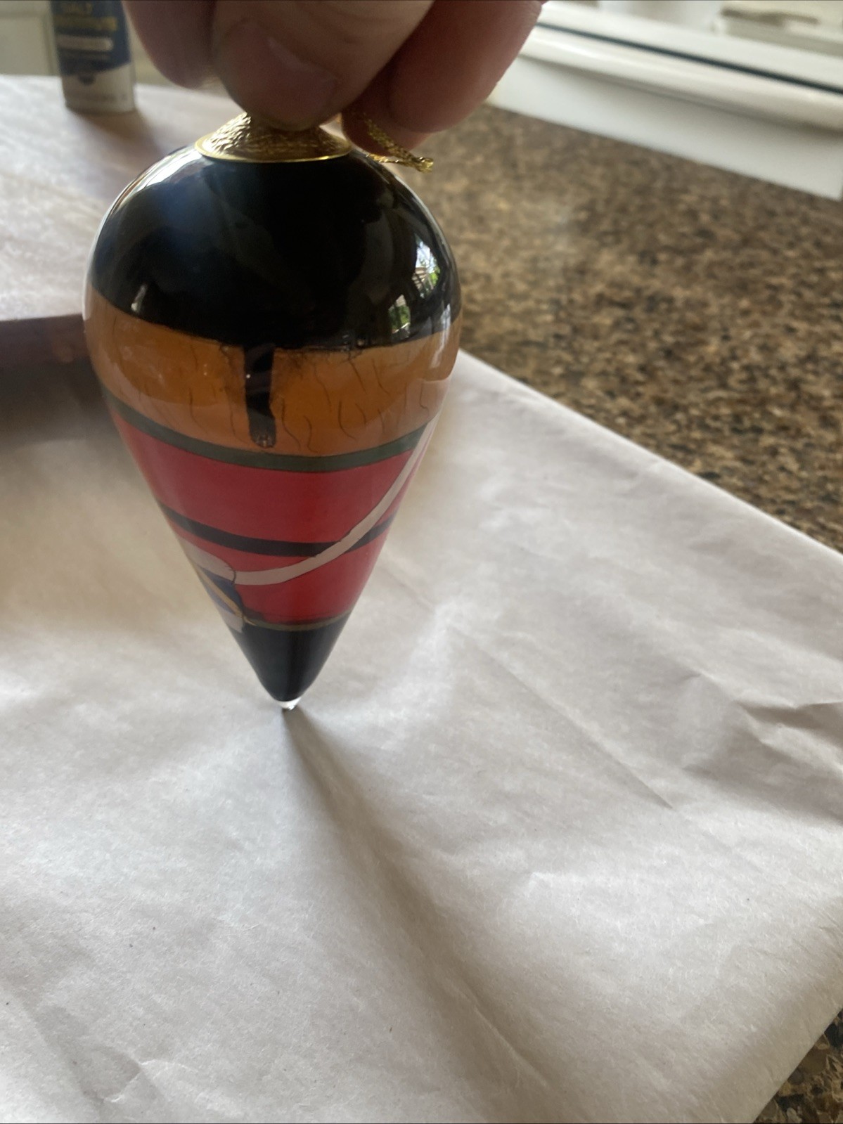 The JC Penney LiBien Reverse Painted Glass Nutcracker Christmas Holiday Ornament Box is a medium-sized, cone-shaped ornament made of glass. Featuring a multicolor all-over pattern with a Nutcracker character theme, this vintage piece is perfect for the holiday season. The ornament comes with a storage box, making it a great addition to any holiday decor collection. With its hanging feature and decorative design, this original J. C. Penney ornament is sure to bring a touch of Christmas cheer to any adult's home.