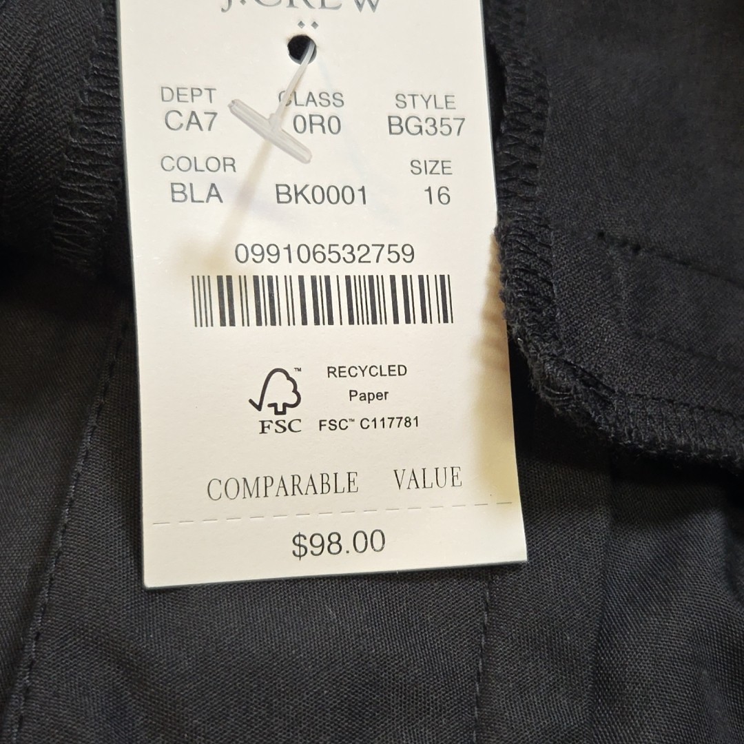 Classic and versatile J.Crew Kelsey Pant in black, perfect for work or polished everyday wear. These pants feature a clean, tailored silhouette with a comfortable stretch fabric that moves with you while maintaining a professional look. The pull-on style creates a smooth waistband with no bulk, making them easy to wear and flattering. Crafted from a soft cotton-blend with elastane for flexibility, these pants are ideal for office, business casual, or dressy occasions. New with original tags attached. J.Crew Kelsey pant, women’s dress pants, black work pants, stretch trousers, office wear, business casual, size 16 pants, pull-on pants, tailored slacks