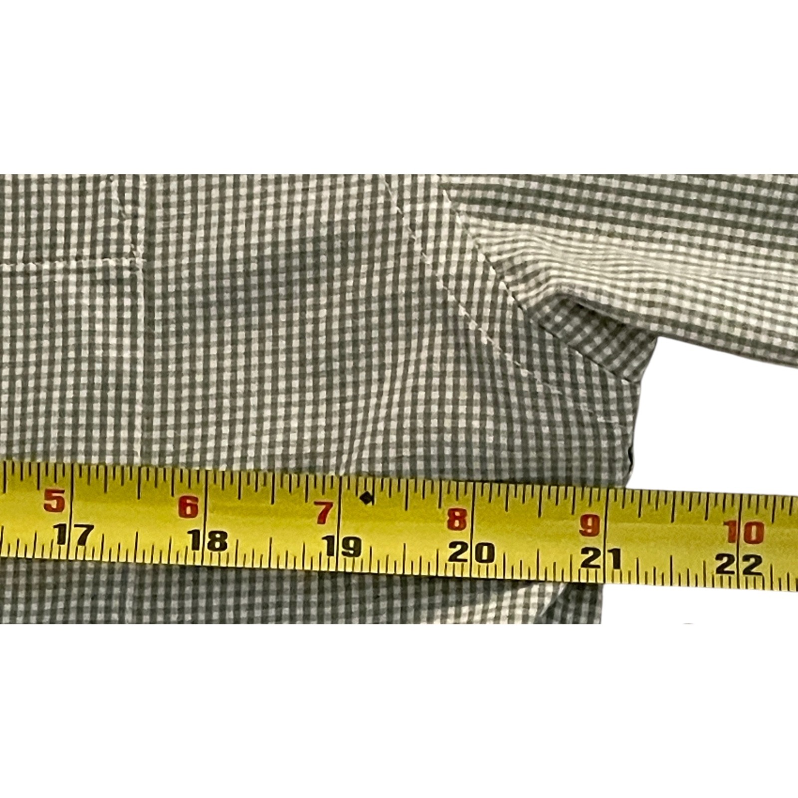 Excellent condition. No stains, tears, or other issues. See pics for measurements. Buy with confidence. Clothing colors often get slightly distorted in photos. For clarification, this shirt is very small checked (gingham) and the colors are olive and white.