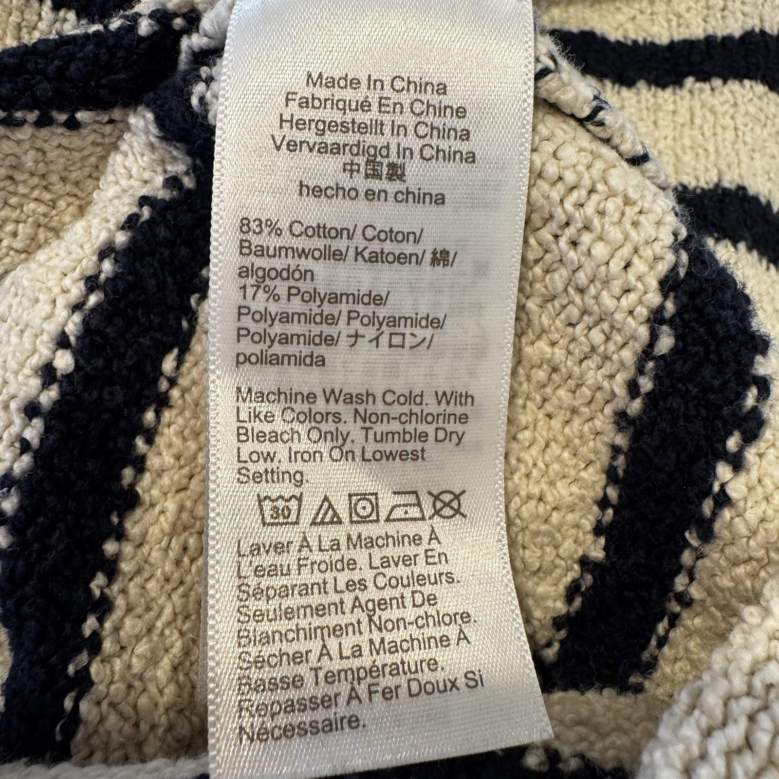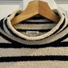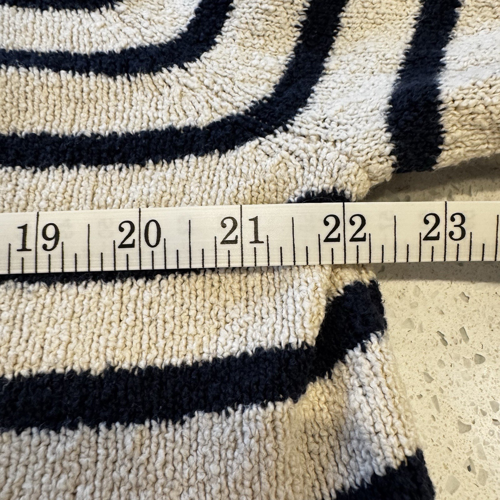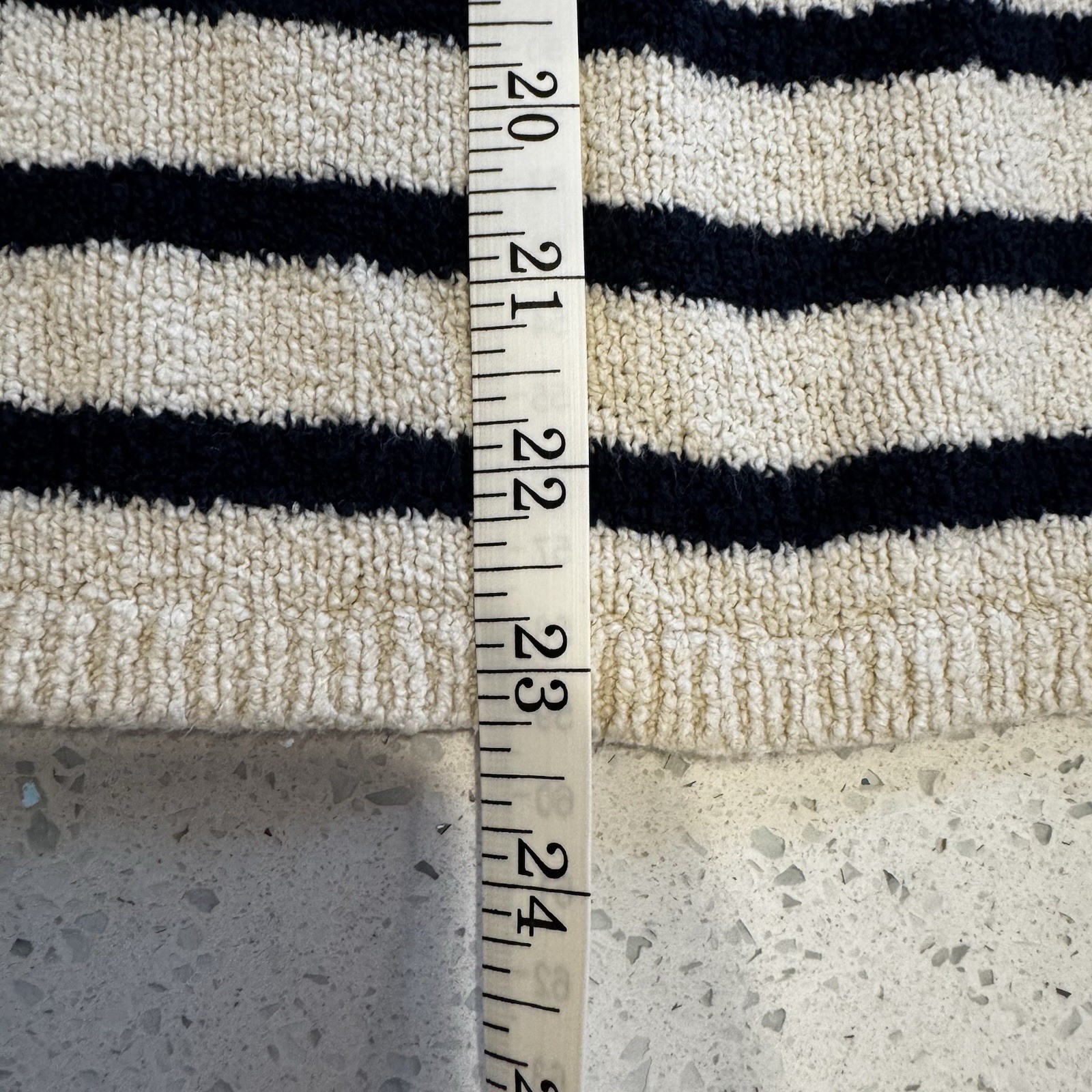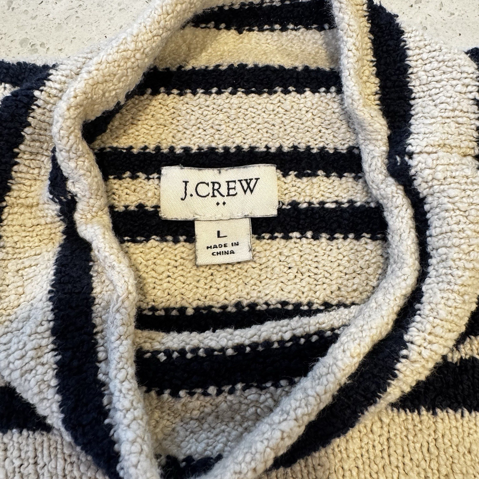 Classic and cozy J.Crew striped roll-neck sweater in ivory and navy blue. Features soft cotton-blend knit fabric, long sleeves, and an easy relaxed fit. - • Size Large • 83% cotton, 17% polyamide • Machine washable • Excellent pre-owned condition - Keywords: nautical chic, french girl style, coastal grandmother, classic preppy, parisian minimalist, casual weekend, quiet luxury, timeless stripe, winter layering, cozy knit