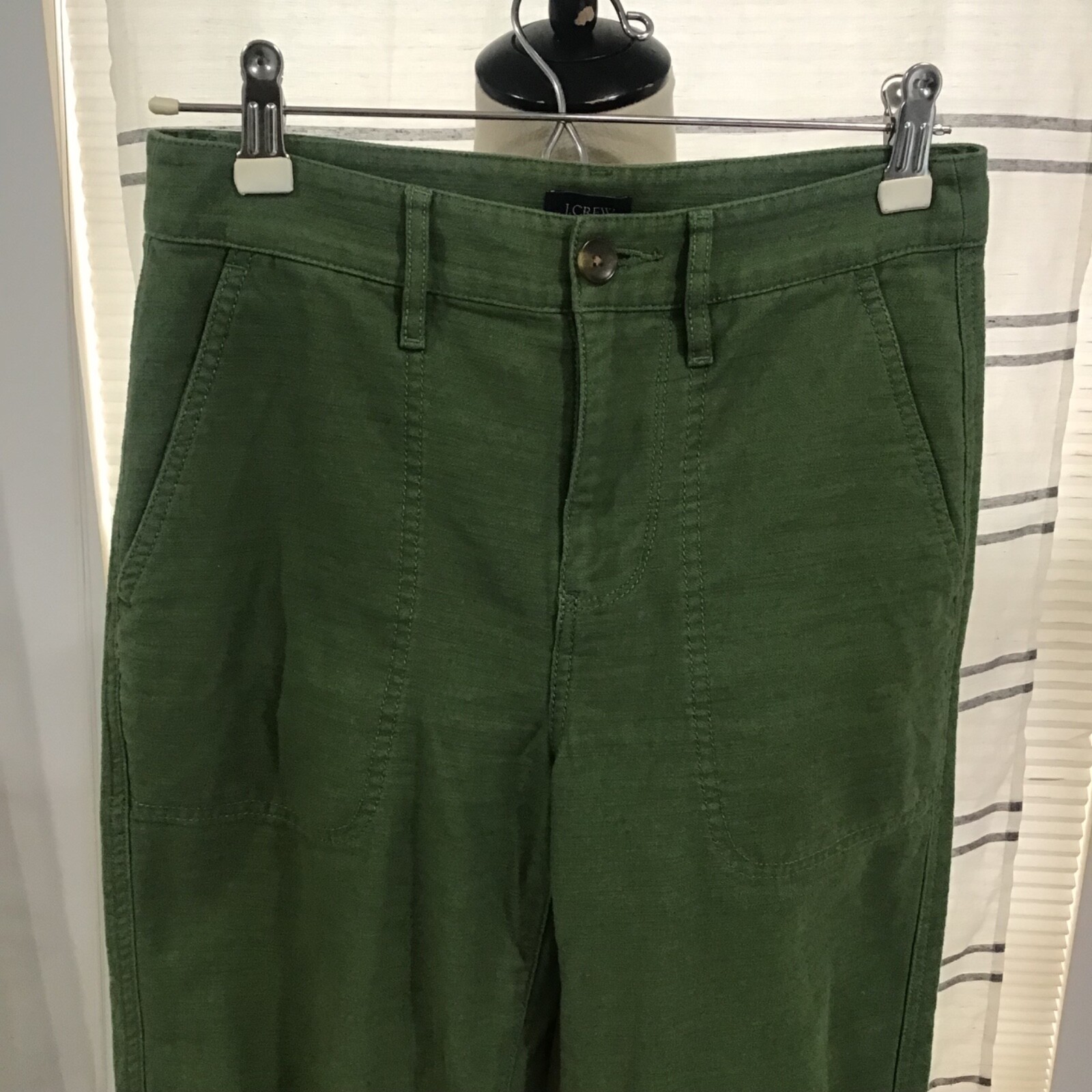 J.Crew Women Size 00 Green High Waist Wide Leg Pants Casual Cuffed Everyday Boho