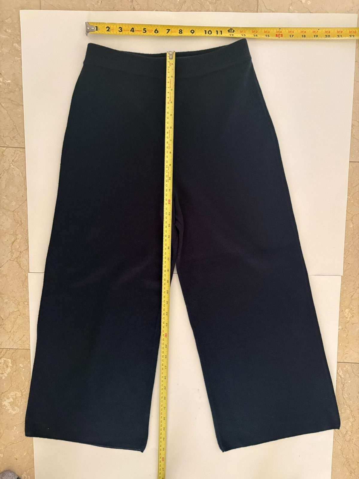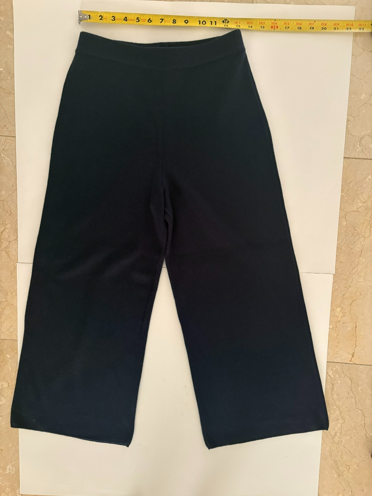 The JCrew Women’s Wide Leg Sweater Pants in size small are a stylish and comfortable addition to any winter wardrobe. Made from a wool blend, these navy pants feature a relaxed fit with a wide-leg style, perfect for casual occasions or travel. The pull-on closure with a drawstring adds versatility to the design, while the high-rise and flat front give a classic look. With features like an elastic waist and stretch fabric, these sweater pants are not only cozy but also practical for all-day wear in the colder seasons.