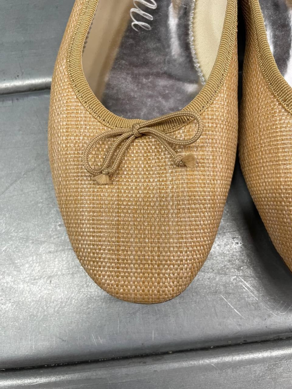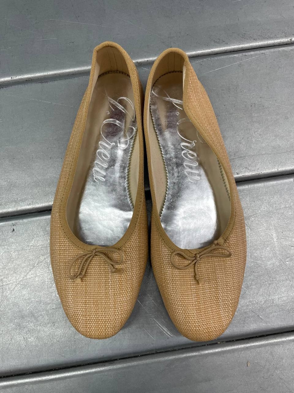 JCrew Zoe Woven Ballet Flats Womens 9 Tan Slip On Round Toe Shoes Bow Good condition, light wear, please see pic for details