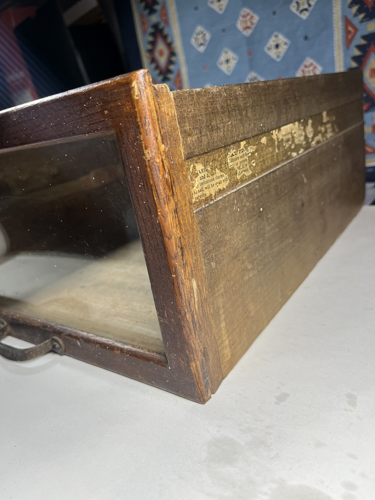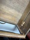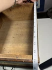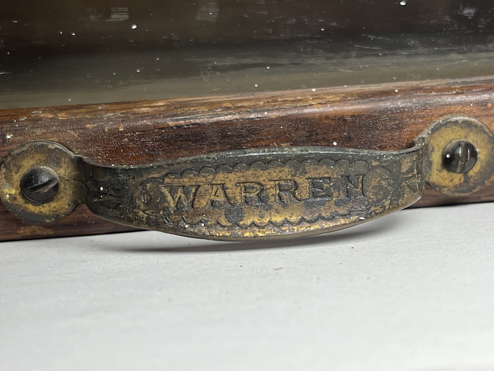 J.D Warren Mfg. Co. Glass Front General Store Cabinet Drawer, Chicago IL. For sale is ONE glass front drawer from a Warren store cabinet. Looks like one side has been glued back together and the glass is a little loose on one side. I believe the glass is loose because it’s missing a small block behind it. Please see all photos for condition, details and measurements
