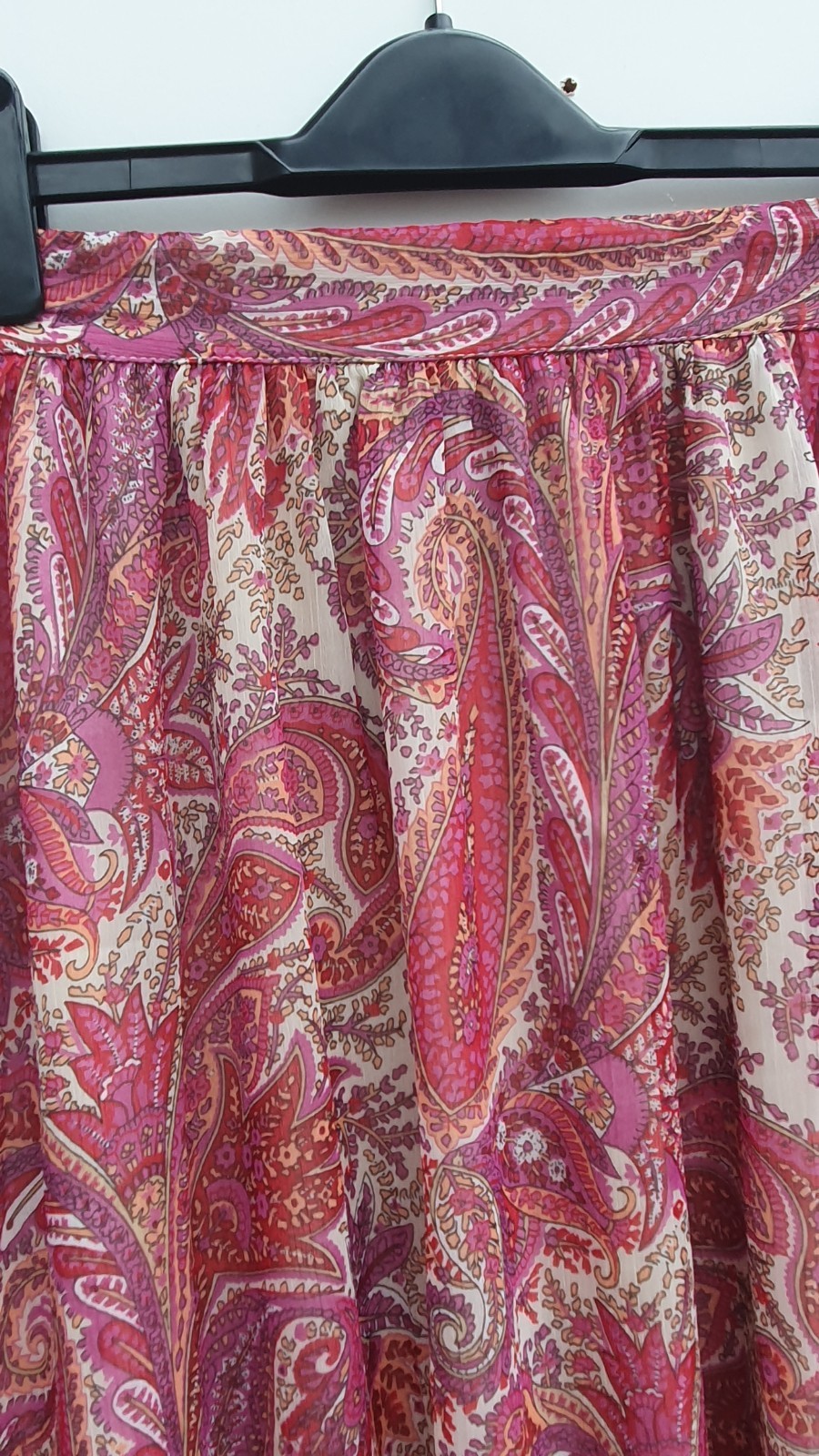 This skirt is absolutely gorgeous! The paisley print is so elegant, and the lightweight chiffon flows beautifully. The half-elastic waistband makes it super comfortable while keeping a flattering fit. Love that it’s lined—no need to worry about transparency. Perfect for breezy summer days or dressing up for an occasion. Just follow the care instructions, and it’ll stay looking fresh. A must-have for any wardrobe!