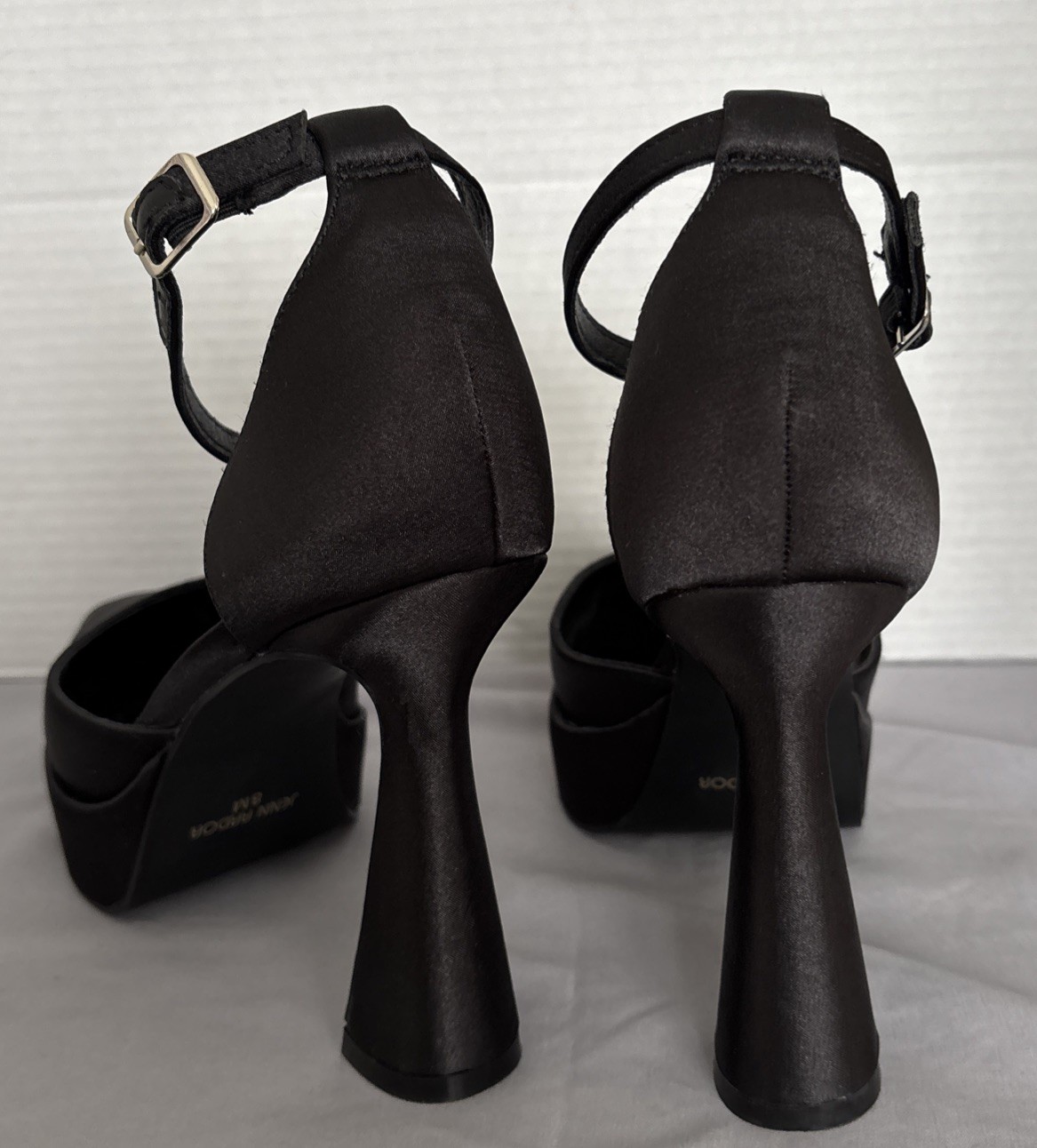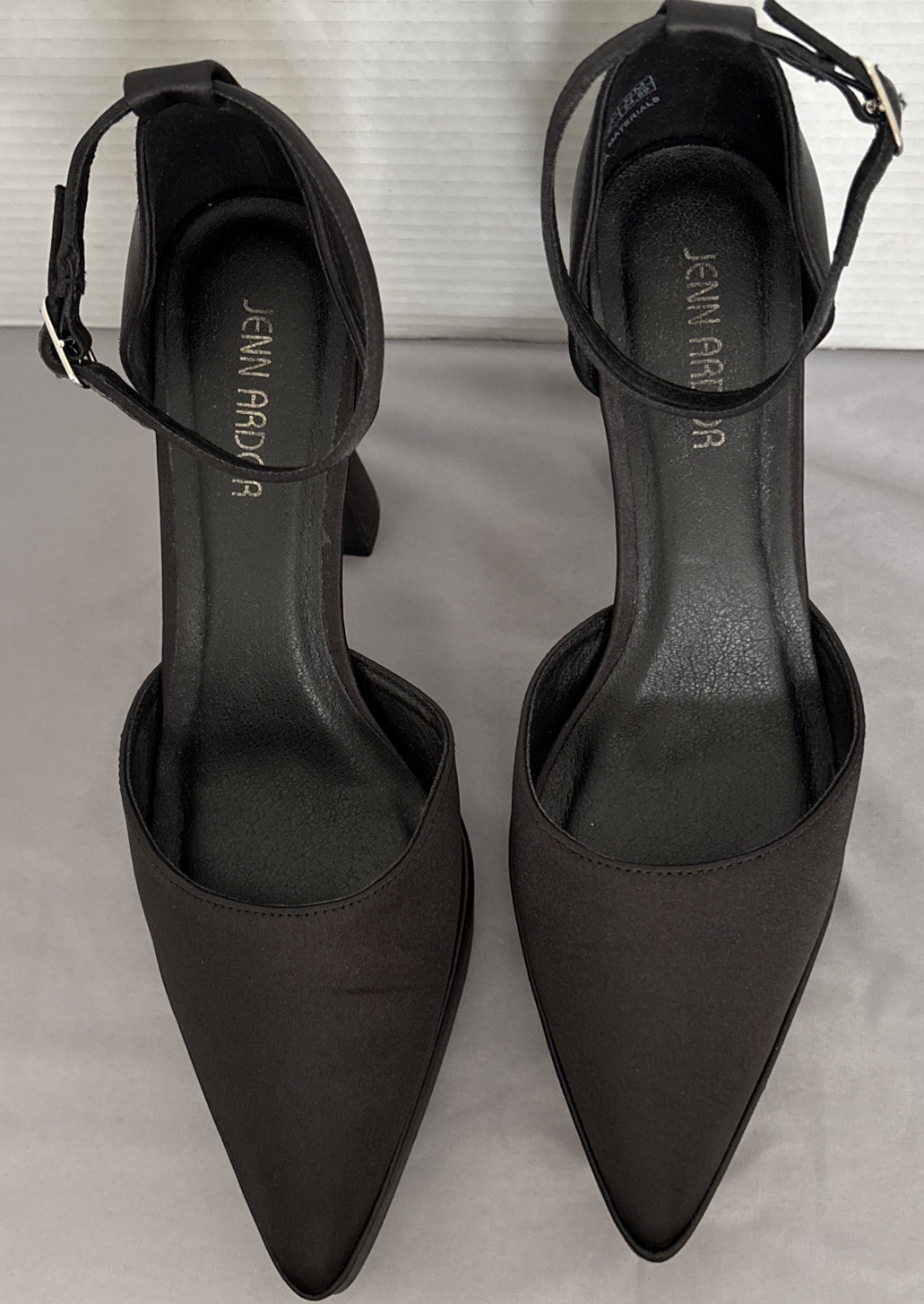 The JENN ARDOR Platform Block Heels in size 8 are stylish and sophisticated ankle strap pumps with a pointed toe. Are black, featuring a chunky kitten heel, these shoes are perfect for a variety of occasions such as weddings, parties, formal events, or even a night out in the city. The block heel provides comfort and stability while the adjustable ankle strap ensures a perfect fit. With their solid pattern and ultra-high heel height, these heels are sure to make a statement and elevate any outfit.