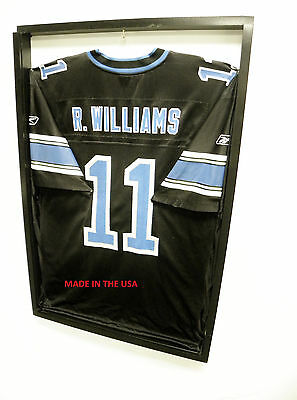 Sports Jersey Display Case with WHITE BACKGROUND + FREE Jersey Display Hanger (BSW) MADE IN THE USA , not overseas like our competition You are looking at a quality made Sports Jersey Display Case with a Black frame and White background These cases have been quality made from High grade Aspen hardwood Detailed below are the item specifics. FREE CLEAR HANGER Outside Measurement - 36" X 24" X 2" Inside Measurements - 34" X 22" X 1.5" Cover is made with Standard 1/8" 100% UV Protect-ant Plexi Glass Brass Hook is installed in the top center inside Ready to Hang on Wall mounting screws are Included Inside Jersey not included Please measure your Item and compare to the sizes listed in the Description to make sure they fit, If you need a different size give us a contact This case is large enough to hold most football, baseball and basketball jerseys as well as any other large items. The plexi glass slides in and out for the ability to easily change out your jersey. Thank you for looking at our product and we hope to be sending you a case soon! PayPal payment must be with CONFIRMED address Michigan address please add sales tax. Please pay within 5 days after the auction ends. eBay Non-Paying Bidder Alert will be filed. SHIPPING We ship to anywhere in the continental 48 states in the US.We also ship to APO/FPO or out side the Country for additional cost Contact us for shipping . Local pickup available, contact first. WE DO NOT COMBINE S&H FOR AUCTION ITEMS. ORDERS are shipped via Home Del.. Orders are usually shipped within 1-3 business days of payment, most of the time we ship the same day except weekend orders. Bidders and buyers should get their packages in 3 to 6 business days. Insurance are included in the shipping fee. CUSTOMER SERVICE contact first, before bidding, if you have any questions regarding the item for sale, the shipping charge, or our payment policy. We support eBay's Non-Paying Bidder Program, so only serious bidders please! You have 5-days from close of auction to send payment! • For your convenience, we will send you invoice within 1 business days after the auction closes. If you contact us first, we request that you include your name, address, auction number, and form of payment you wish to use. 100% UV • All sales are final. Exchange only for defective item within 5 days of receipt. please contact us for RMA Number, All unauthorized returns will not be processed. Please allow 2 weeks for return to be processed. WE DO NOT REFUND S&H. About Feedback When you receive the item and satisfied with the product, please leave us positive feedback and 5 scores DSR. We will leave a 5 Scores DSR feedback for you. If, for any reason you are not satisfied with your purchase, please contact us via Ebay Message and we will do our best to resolve it. Do NOT leave neutral or negative feedback without any communication with us. Jersey Frames, Jersey Frame , Jersey Framing Jersey frames , display case steelers jersey, glass display framing Jersey, jersey framing, jersey display frame football jersey display case, hockey jersey display mlb jersey display case, nbl jersey display case , acrylic jersey display case baseball jersey display case, cheap jersey display case , shadowbox frames, shadowbox frame, shadowbox display case, studio deco jersey display box, jersey shadow box, shadow box for jersey, shadow boxes for jerseys, shadow box for jersey display, jersey shadow box frame, shadow box jersey display case, shadow box jersey, jersey shadow box frames, jersey shadow boxes, football jersey shadow box, hockey jersey shadow box, jersey box frame, shadow box jersey frame, how to frame a jersey in a shadow box, jersey shadow box display case, baseball jersey shadow box, shadow box frames for jerseys, jersey boxes, how to shadow box a jersey Michigan Residents MUST Pay Michigan Sales Tax. SHIPPING IS FOR THE CONTINENTAL USA ONLY. Shipping to AK, HI, PR, APO's & FPO's requires additional shipping charges. Sellers are not responsible for UPS ground or FedEx Home service transit time. (Usually 3-15 days ) Transit times are provided by the carrier, exclude weekends and holidays, and may vary with package origin and destination, particularly during peak periods. Due to These Cases Being Over-sized the Shipping is Based on Dimensional Over-sized with FedEx or UPS. This Case Will Work For All : Baseball Jersey Display Case, Football Jersey Display Case Hockey Jersey Display Case, NASCAR Jersey Display Case, Basketball Jersey Display Case . Items shipped to apartments and are over $55.00 will require a Adult Signature per Ebay and PayPal Policy. Also sometimes the shipper may require a signature to certain address's