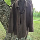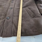 The JF J. Ferrar Men's Wool Blend Coat Quilted Jacket in size XL features a modern fit with a brown solid color. Made from a wool blend outer shell material and lined with polyester, this coat is perfect for travel, casual, or business occasions. The zipper inside and buttons outside closure adds a stylish touch to the pea coat style, along with accents like buttons and zippers. With two outside and two inside pockets, this coat from the J Ferrar product line is a versatile and fashionable choice for men looking for a high-quality winter essential.