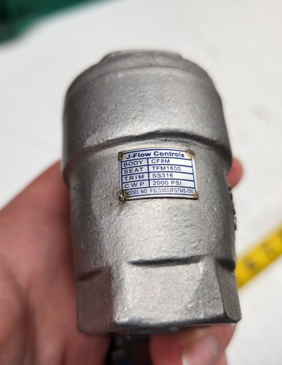 This is NEW as pictured, Ball Valve from J-Flow, never used or damaged. Info: Brand: J-Flow Size: 1/2" Material: 316 Stainless Steel Series: FSLD3500 Port: Full End Connections: NPT PSI: 2000 Type: Fire Safe Ball Valve Buyer Information: We will ship your item(s) after your payment has been cleared, to a confirmed address. If an item arrives damaged, keep everything sent to you, and contact us within 30 days after receiving item. If you are satisfied with your transaction with us, please leave your comment and we will be sure to reciprocate. Please contact us with any concerns before leaving neutral or negative feedback, we will ensure complete satisfaction. D12