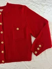 JH Collectibles Size Medium Red Sweater Wool Sweater Button Front 2 Pockets 21” underarm to underarm, 21” length, 23” shoulder to cuff