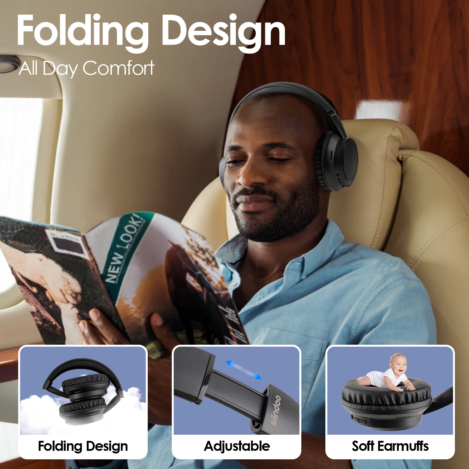 Siindoo JH-820 Wireless Bluetooth Headphones, 60H Playtime,3 EQ Sound Modes,Newest Foldable Lightweight BT 5.4 for Travel Study 【HIGH FIDELITY AUDIO 】Siindoo Bluetooth headphones deliver crystal crisp highs, balanced mids and powerful bass through 40mm acoustic stereo drivers. Equipped with 3 EQ modes, switch according to different music the balanced sound. You can enjoy high-quality crystal clear stereo sound with our over-ear headphones. 【Seamless Bluetooth 5.4 Connection】Siindoo Wireless Headphones are compatible with all Bluetooth or 3.5mm plug cable enabled devices such as , Smart android phones, Tablet, Laptop, Pads, MP3/4 Player, Compuer, and other Bluetooth devices. Just slide the on/off button and the headphones will be in ready to pair mode. It is built to provide a quick and stable Bluetooth connection and to enable hands-free communication 【ADJUSTABLE AND PORTABLE DESIGN】Adjustable headband are ergonomic design and ultra-soft ear cups, Bluetooth headphones provide a comfortable around-ear fit. Foldable design makes it easy for you to take the headphones whenever they go. Perfect for on-line courses, classes, movies, etc. 【LONG BATTERY LIFE & DUAL MODE】Siindoo JH-820 Headphones are Rechargeable. 28 hours of music time, 2-2.5 hours Fast Charing. After 15 hours of playtime, you can switch to wired mode and enjoy your music NON-STOP. You do not need to worry about power shortage problem for the long travel. 【CLEAR CONVERSATIONS 】Siindoo Bluetooth headset with built-in microphone has clear voice effect, compatible with smartphones for hands-free calling and use with voice assistants. please feel free to contact us if you have any inquiries during use. Specification Bluetooth version V5.4 Working distance) ≥10M Charging port:Type-C Battery 200 mAh Charging time about 2.5 H Standby time about 200H Taking time about 21H Music play time about 24H (70% volume) Dual Device Connection Speaker Driver Units Ф40mm Impedance 32±2Ωv Speaker Sensitivity 105db±3db Frequency response 20Hz~20KHz Feature of over ear bluetooth headset: Ergonomic design, more comfortable to wear Lightweight and simple structure Foldable and stretchable design,portable to take Frosted surface texture 3 EQ Modes (Pop, Bass and Vocal ) Softly padded headband and protein foam earmuffs that cover fully their ears 3.5mm jack line wired headphone+Bluetooth Fashionable and unique design what's in the box: • 1 x Siindon JH-820 headset • 1 x 0.5m Type-C charging cable • 1 x 1.2m AUX cable • 1 x User manual