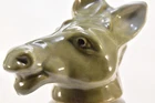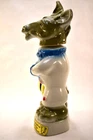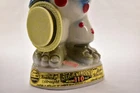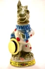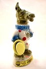 This very handsome Jim Beam decanter is from 1968 and is a Democrat Donkey in a clown suit. The bottle is in very good shape with no nicks, scratches, or cracks. The original cork seems to be intact, but I have not removed the head for fear of breaking the cork. It has the original liquor identification stamp from South Dakota, and the original Styrofoam hat is also included. The bottle is empty and the condition is "used".