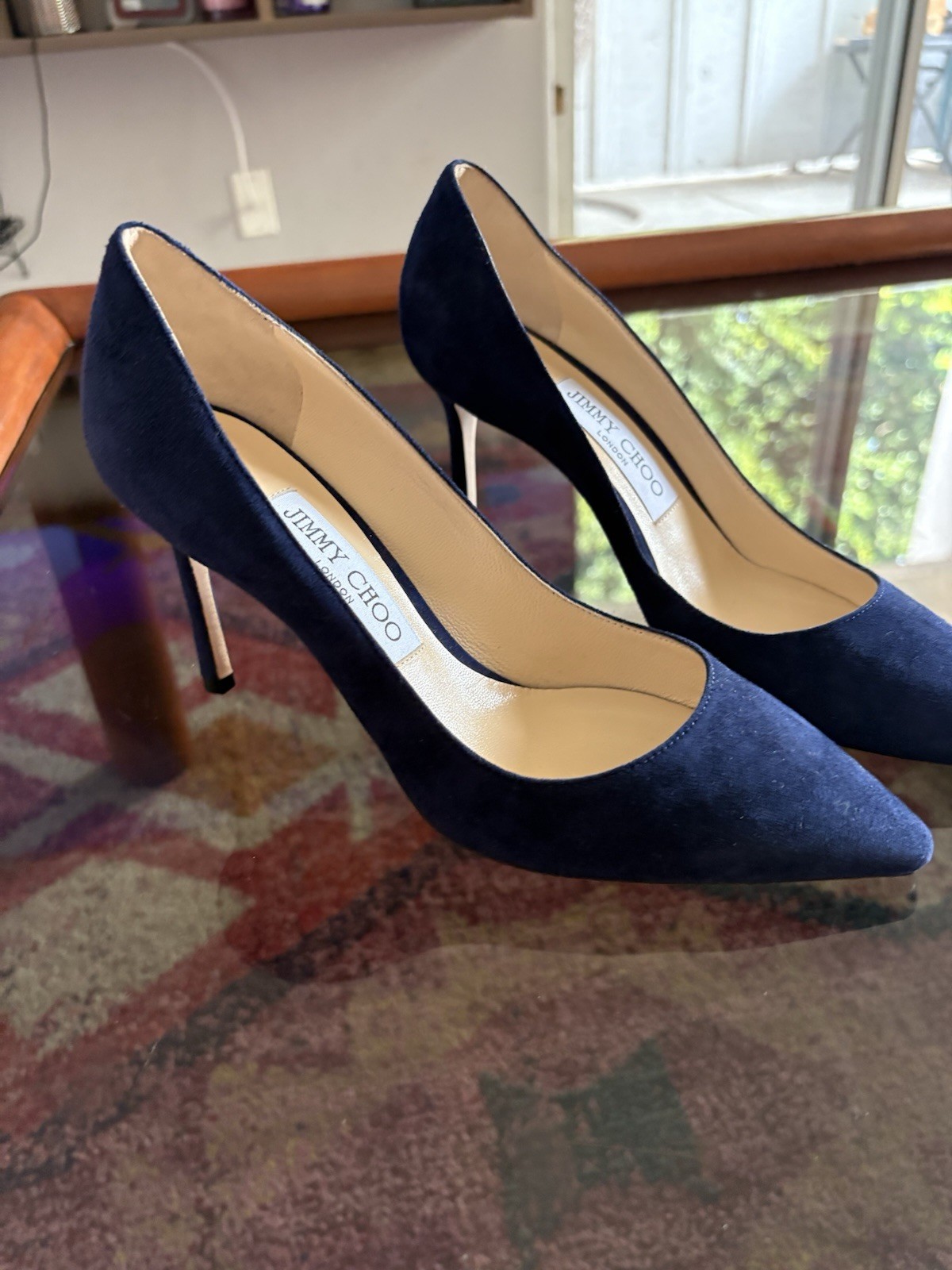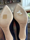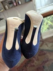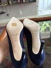 The product is a pair of JIMMY CHOO suede pumps heels in a beautiful blue color. These pointed toe shoes are designed specifically for women in UK shoe size 3, AU shoe size 6, and US shoe size 6.5. With a mid-heel height ranging from 1 3/4 inches to 2 3/4 inches, these pumps are perfect for adding a touch of sophistication to any outfit. Made from luxurious suede, these heels are both stylish and comfortable, making them a popular choice for any fashion-forward woman.