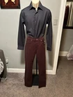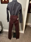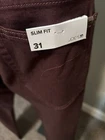 Upgrade your wardrobe with these stylish Joe's Jeans pants in a beautiful Hugleberry color. These pants feature a slim fit, straight leg design with a high rise waist for added comfort. The 5-pocket design with slash pockets provides ample storage space for your essentials. Made of a soft Modal Blend fabric, these pants are machine washable and perfect for any season - be it winter, summer, fall or spring. Ideal for various occasions like travel, workwear, casual or party/cocktail, these pants have a versatile appeal. The pants come in a size 31/34 and have a 34-inch inseam. CONDITION NEW WITH TAGS MEASUREMENTS WAIST 31 INCHES INSEAM 34 INCHES LEG OPENING 7 INCHES MATERIAL CONTENT 55% LYCELL 43% COTTOM 2% SPANDEX COLOR HUGLEBERRY