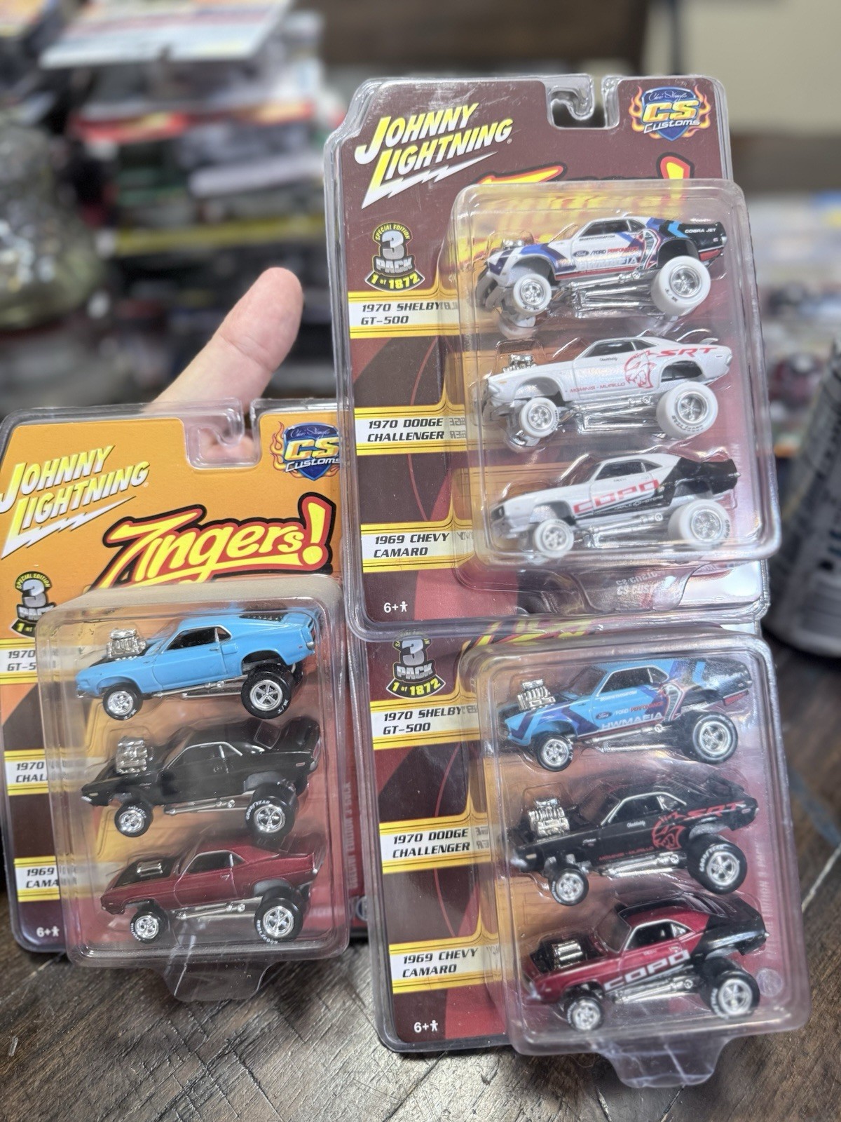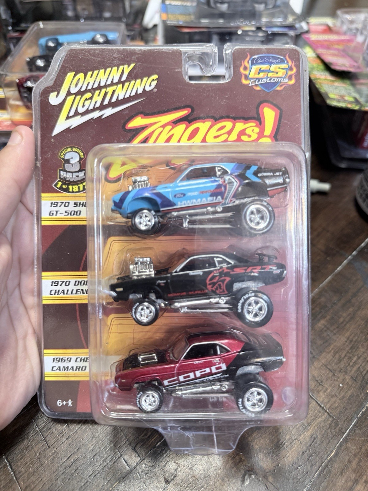 The Johnny Lightning CS Customs Shelby GT, Challenger, and Camaro Zinger White Lightning is a special edition 3 pack featuring diecast vehicles in a 1:64 scale. This limited edition set includes a Chevrolet, Shelby, and Dodge vehicle make, each in a white color. The vehicles are part of the CS Customs 2nd Annual Diecast Convention series and come in an unopened box, making them ideal for collectors and car enthusiasts. With a chase car included, this set offers a unique addition to any diecast vehicle collection.